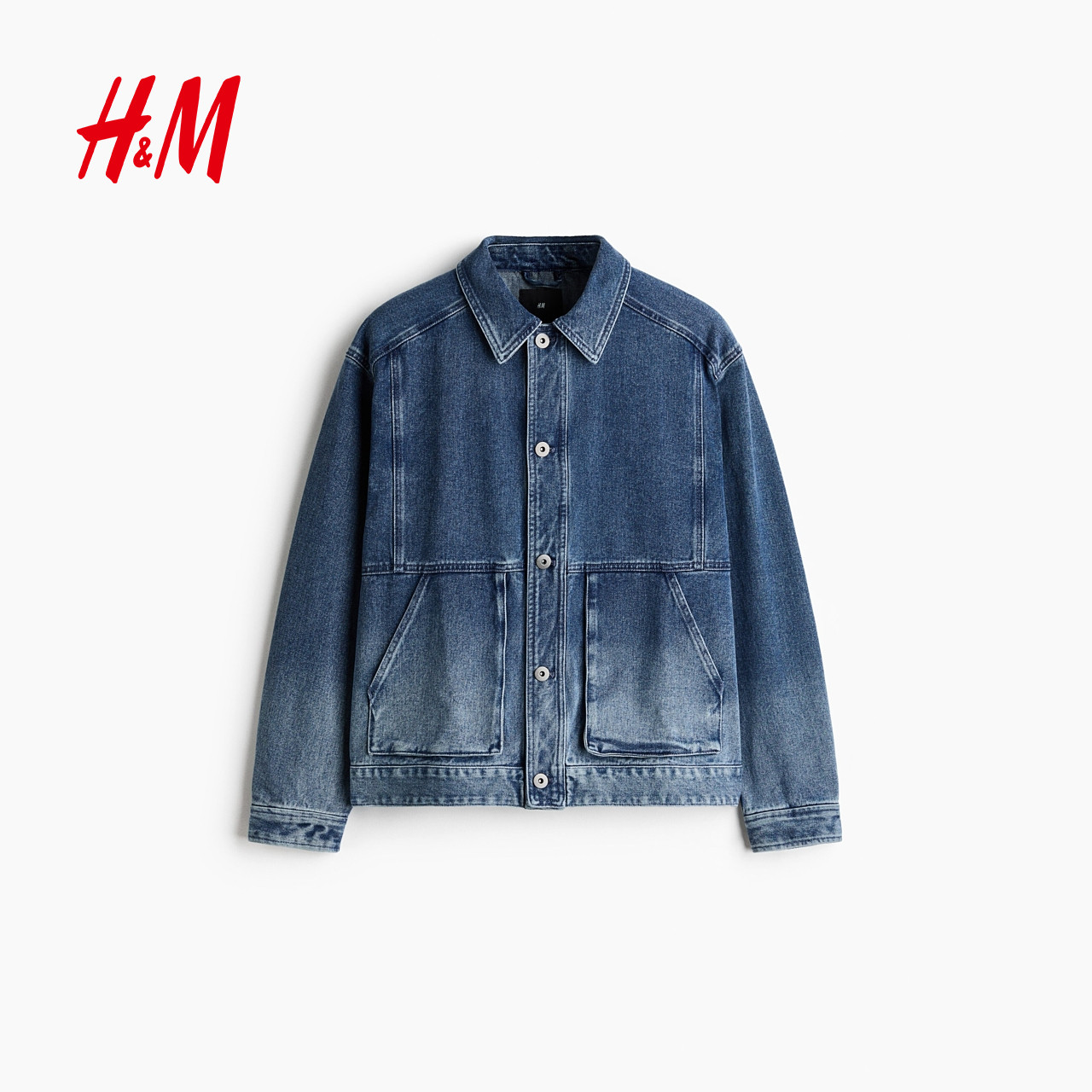 天猫HM男装牛仔外套2026夏季新款水洗美式利落牛仔衬衫夹克1326421