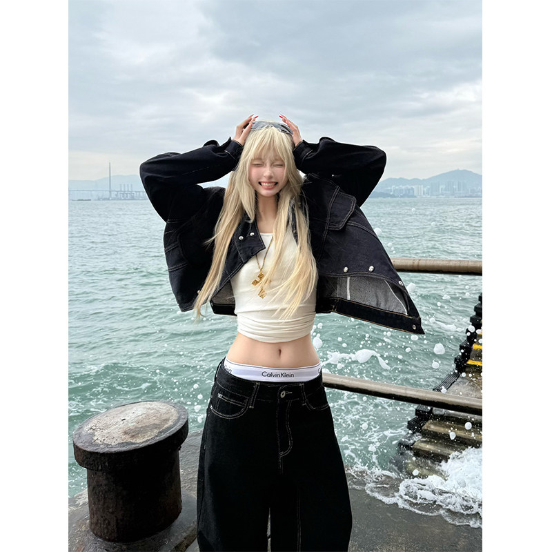 淘宝JMJ美式复古廓形设计感牛仔外套男女宽松休闲百搭夹克上衣