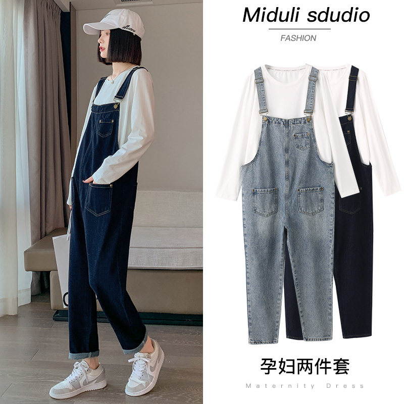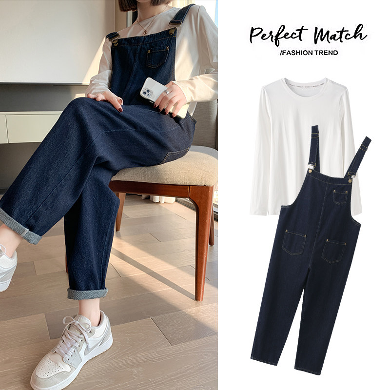 淘孕妇背带裤春秋新款气质减龄小个子百搭宽松牛仔吊带裤春季长裤