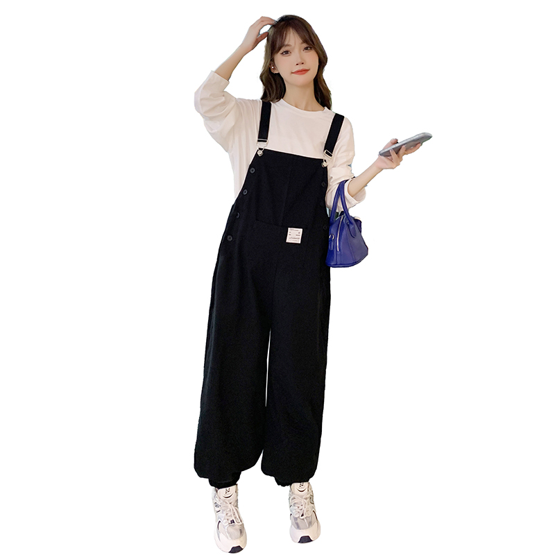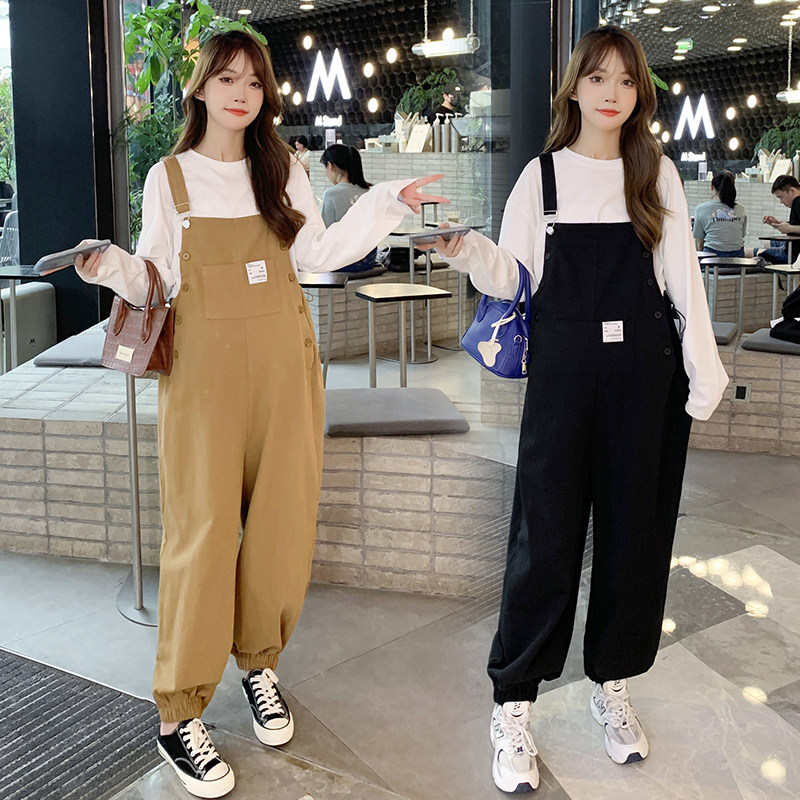 加肥大码300斤孕妇背带裤春秋小个子宽松上衣吊带裤套装工装长裤