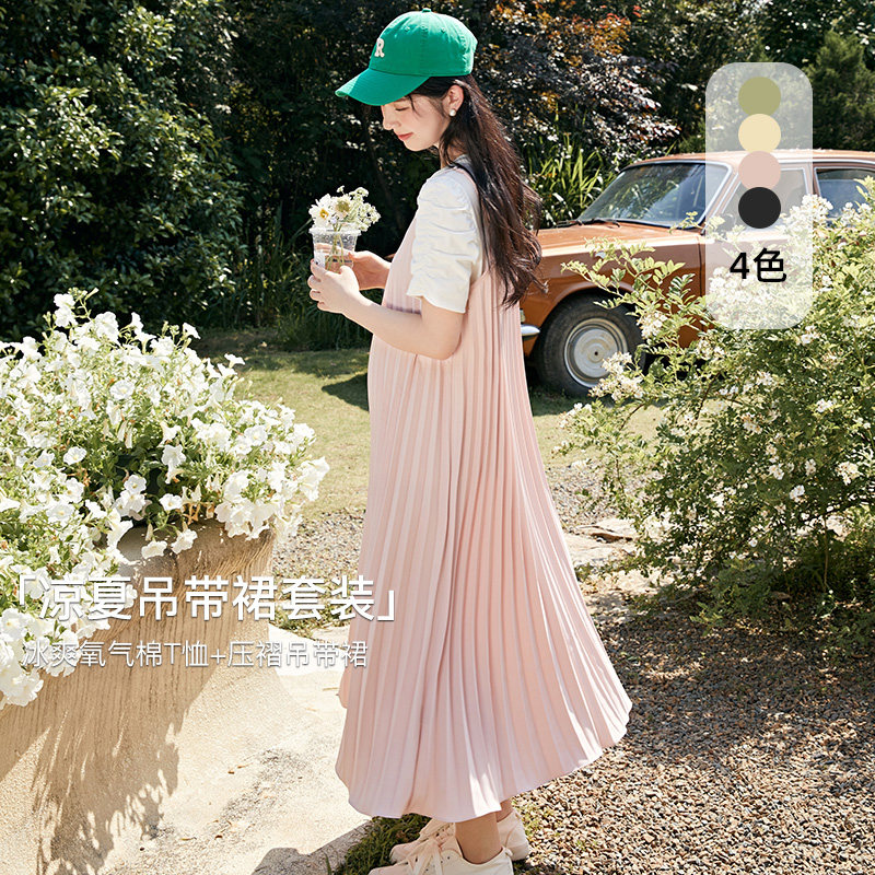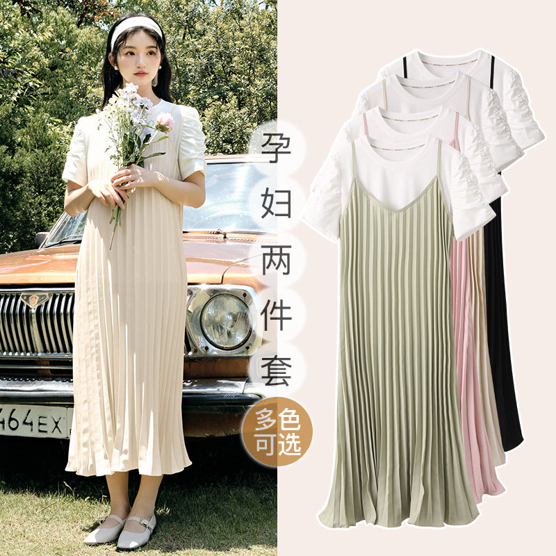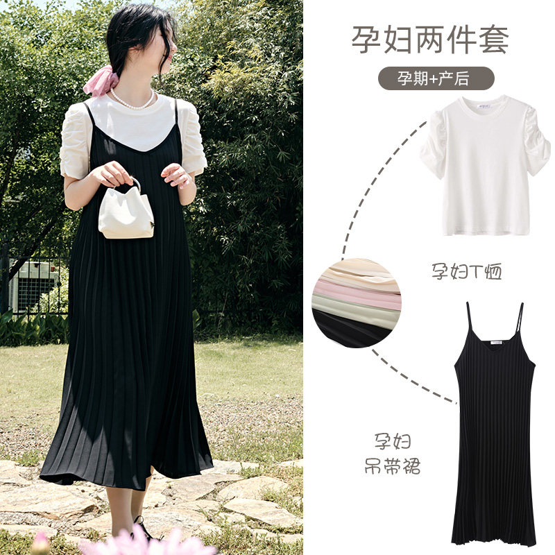 天婧麒孕妇夏装连衣裙背带裙上衣两件套薄款女士衣服2025超火重