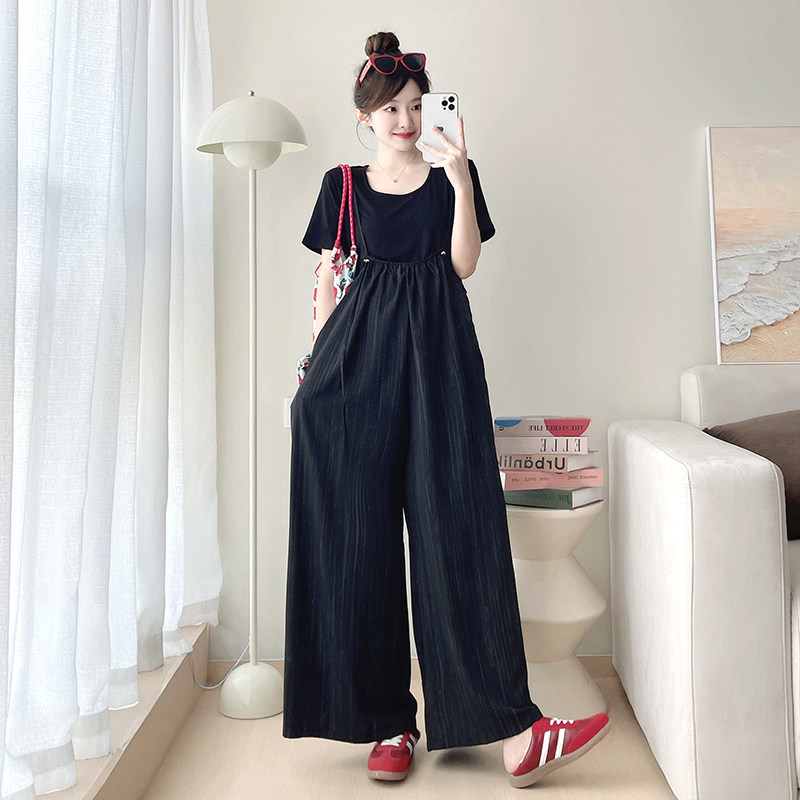 淘孕妇背带裤春季宽松直筒裤子小个子大码春秋外穿吊带裤休闲套装