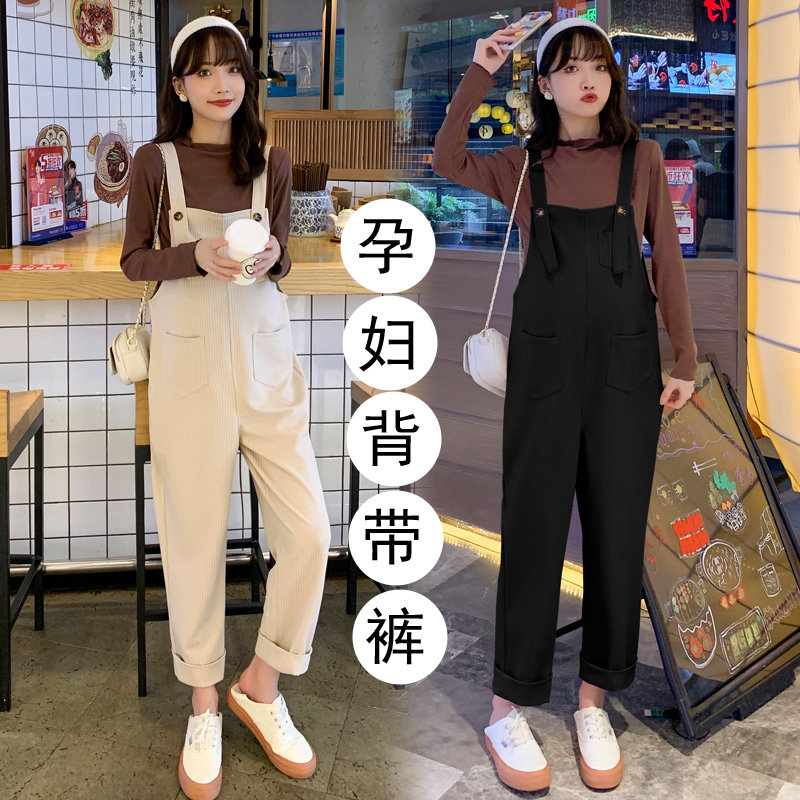 淘孕妇背带裤2025新款春秋加绒束脚裤休闲套装灯芯绒宽松大码吊带裤
