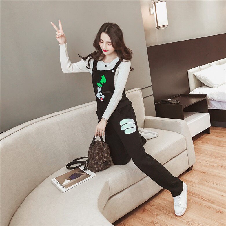 淘孕妇背带裤春季宽松直筒裤子小个子大码春秋外穿吊带裤休闲套装