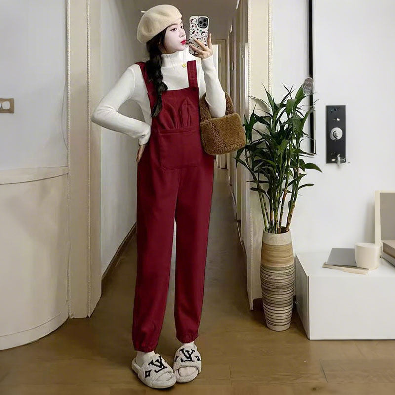 淘清仓孕妇背带裤秋冬加绒孕妇裤子连体裤纯棉外穿春秋加厚背带长裤