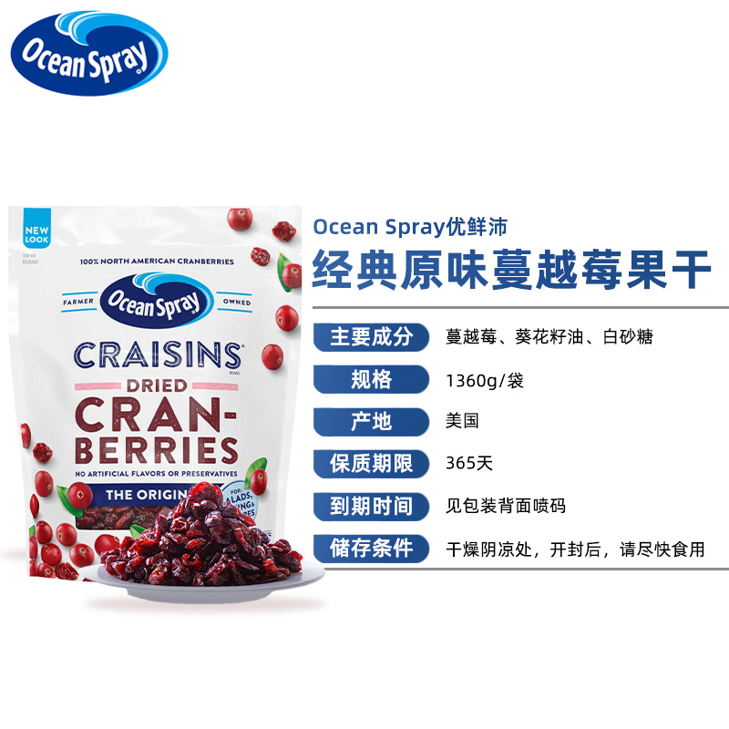 天猫【自营】oceanspray优鲜沛蔓越莓果干烘焙零食水果干礼物1360g*2