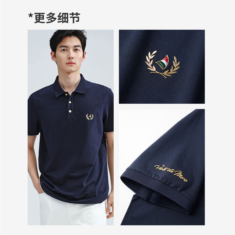 天猫Navigare意大利小帆船夏季凉感POLO衫男短袖蓝色通勤翻领T恤