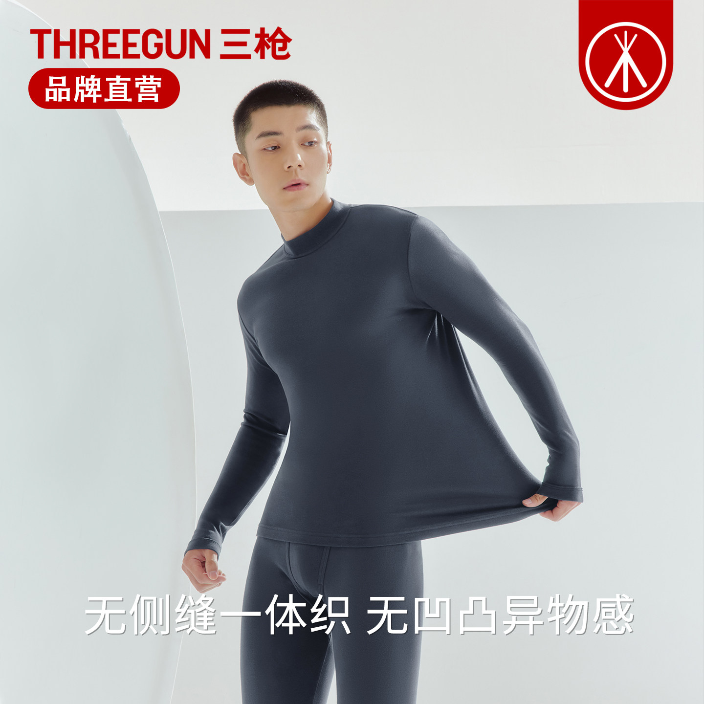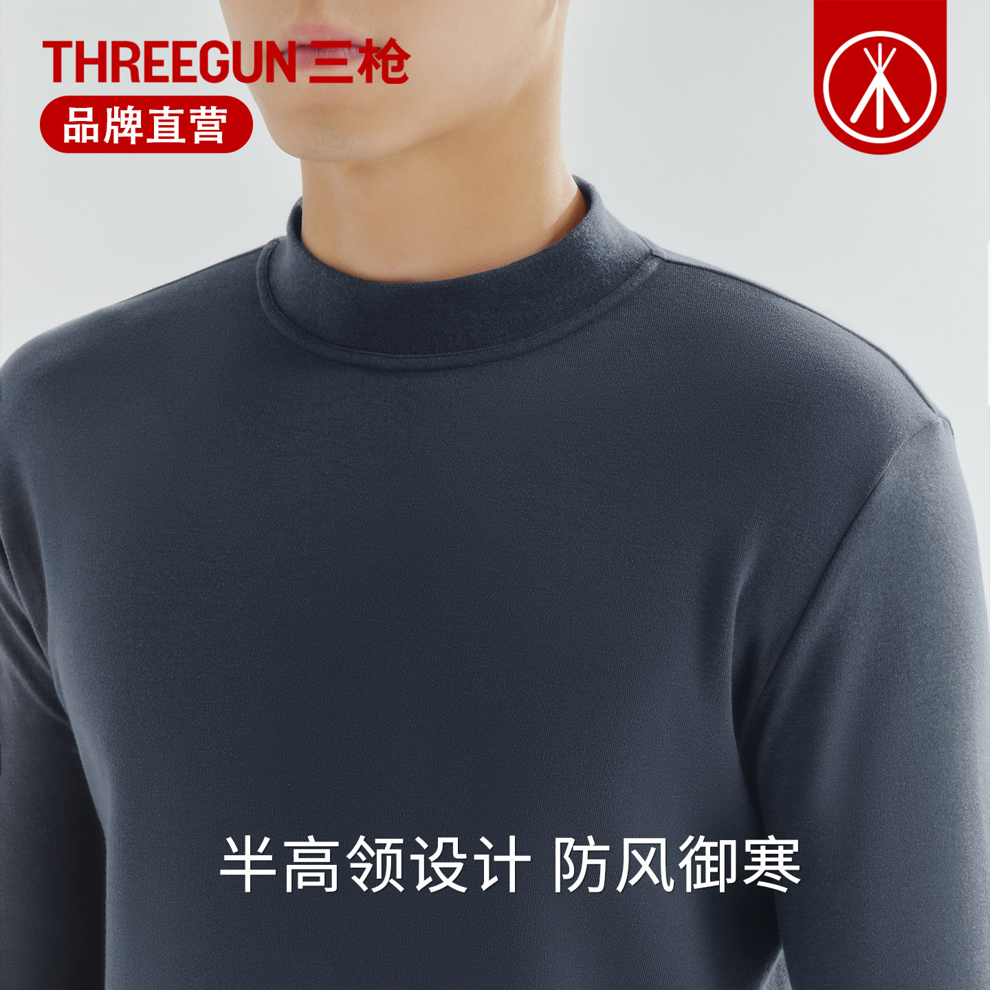 天猫三枪男士保暖内衣100%纯棉中厚半高领秋衣秋裤中老年打底棉毛衫裤