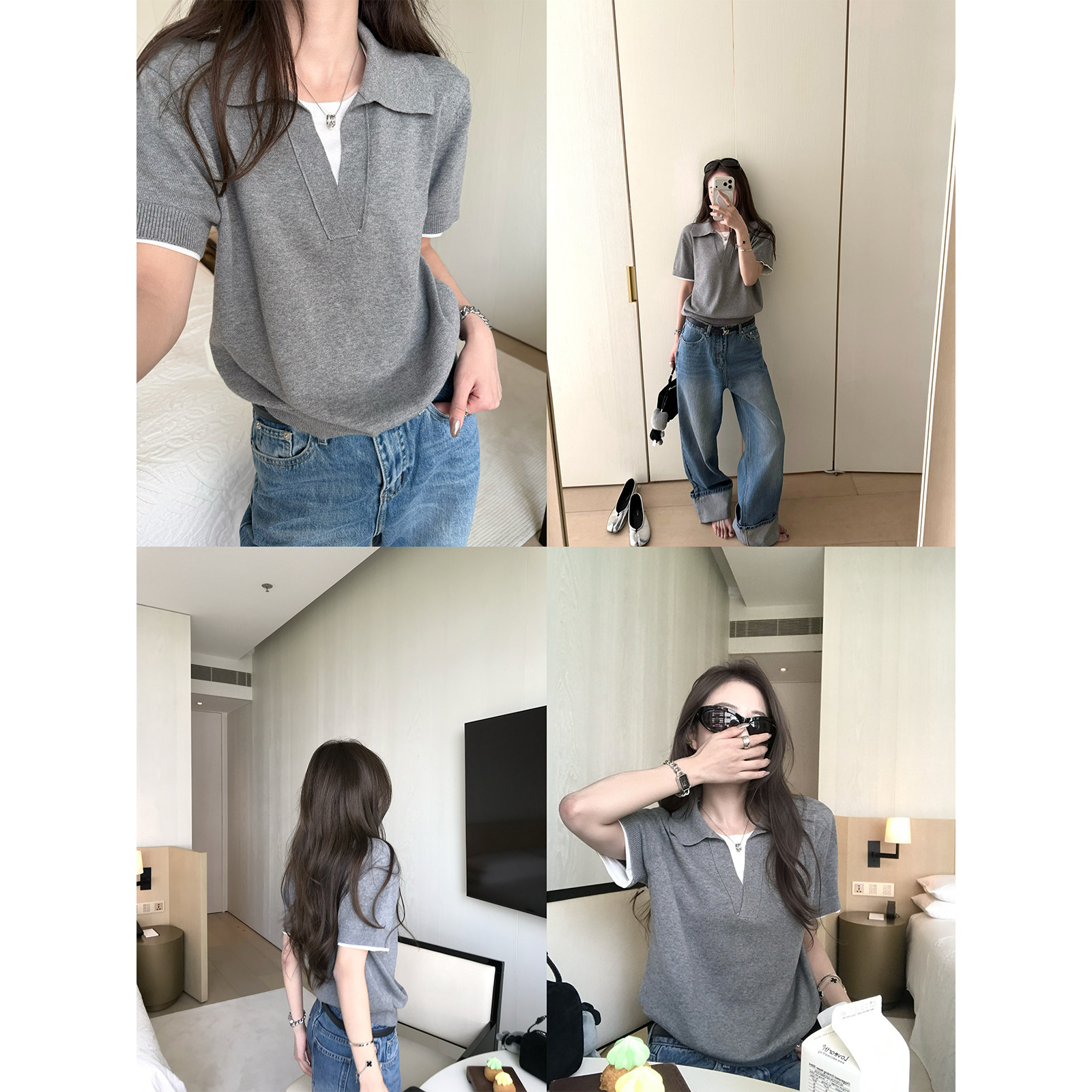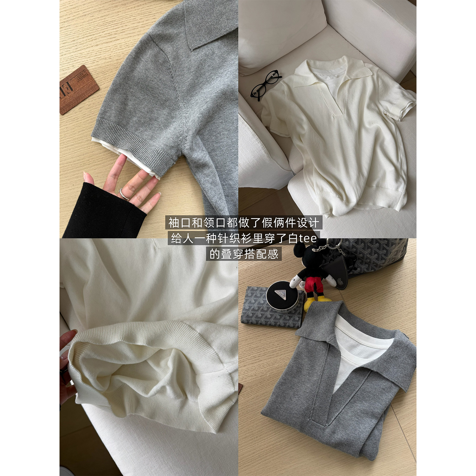 淘宝'高尔夫polo衫'全棉老钱休闲运动风假俩件叠穿感翻领短袖针织上衣