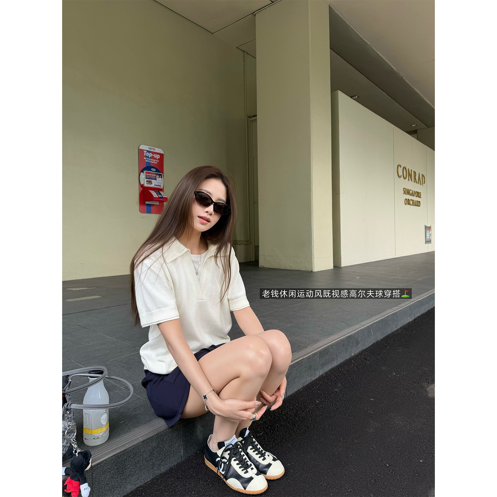 天朗姿25POLO领坑条肌理针织衫女纯色百搭休闲气质套头衫女夏季新款
