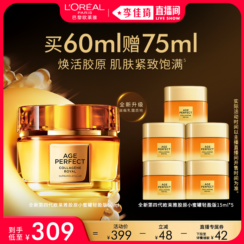 【李佳琦直播间美妆节】欧莱雅小蜜罐胶原面霜,专为肌肤补水紧致而生!蕴含高浓度胶原紧致肽与天然蜂蜜精萃,深层滋养,提升肌肤弹性,有效对抗松弛与细纹。轻盈乳霜质地,一抹即融,迅速渗透,令肌肤水润饱满、细腻柔滑。长期使用可显著改善肌肤干燥、暗沉问题,重塑紧致轮廓。李佳琦直播间限时美妆节,超值优惠叠加赠品,性价比超高!众多粉丝亲测好评,被誉为“抗老面霜性价比之王”。趁此良机,赶紧入手,让肌肤喝饱水、紧回来,焕现年轻光采!错过再等一年,速来抢购!