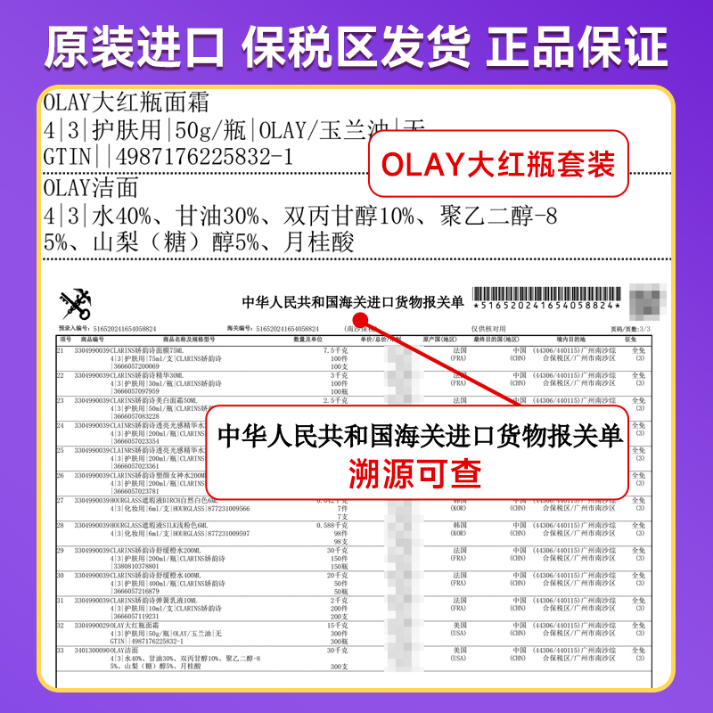天猫Olay玉兰油大红瓶面霜50g洗面奶100g抗老抗皱2件套礼盒临期