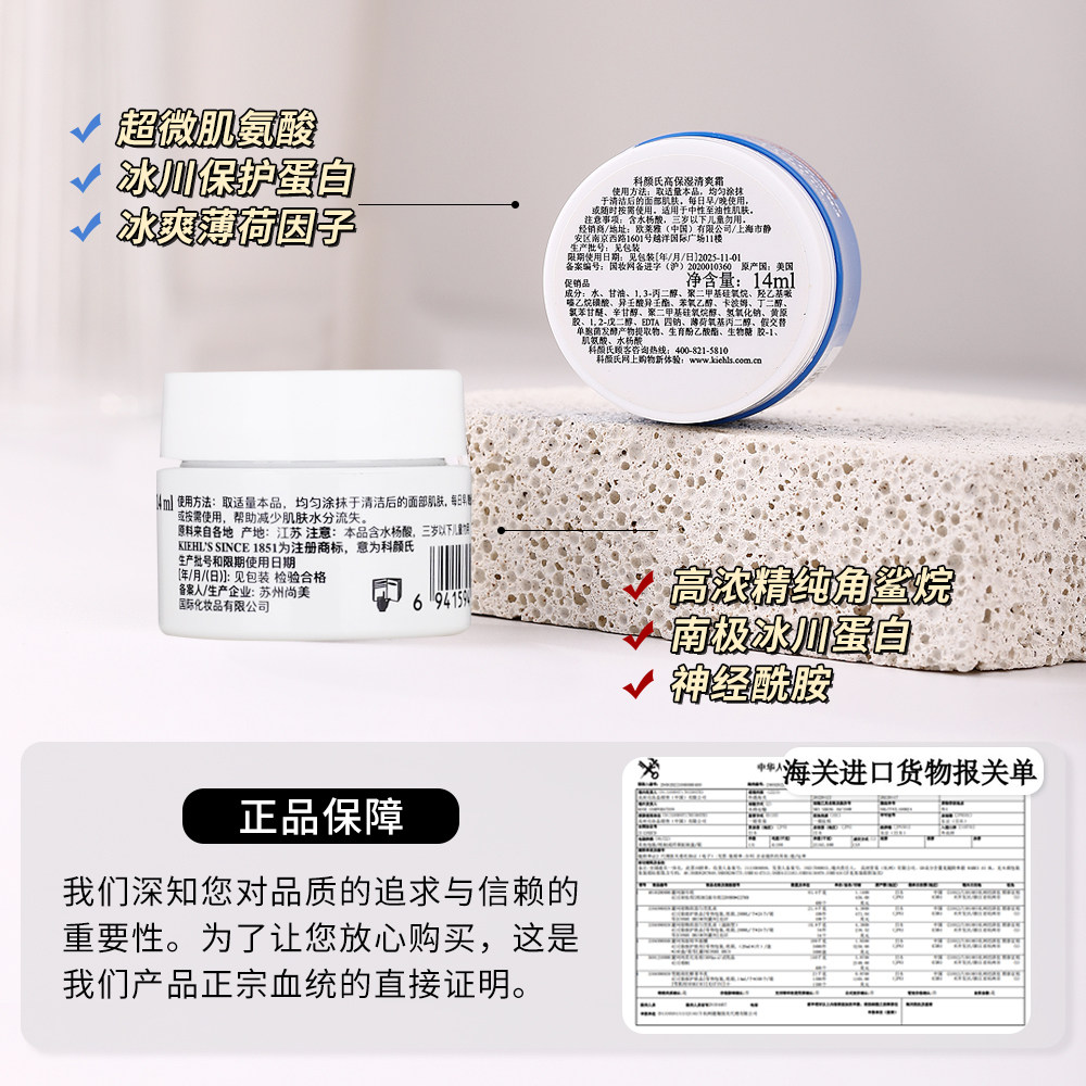 淘宝科颜氏高保湿面霜清爽/滋润14ml补水保湿霜脸干护肤品小样果冻霜