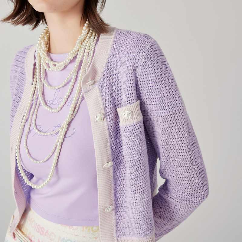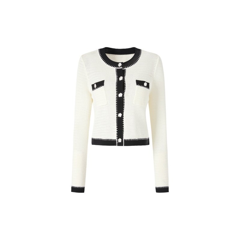 天猫商场同款 摩萨克夏全棉航海系小香风长袖撞色针织开衫上衣女