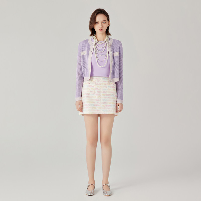 Goodland美地粉色法式小香风圆领针织开衫女短款外套LC35106230