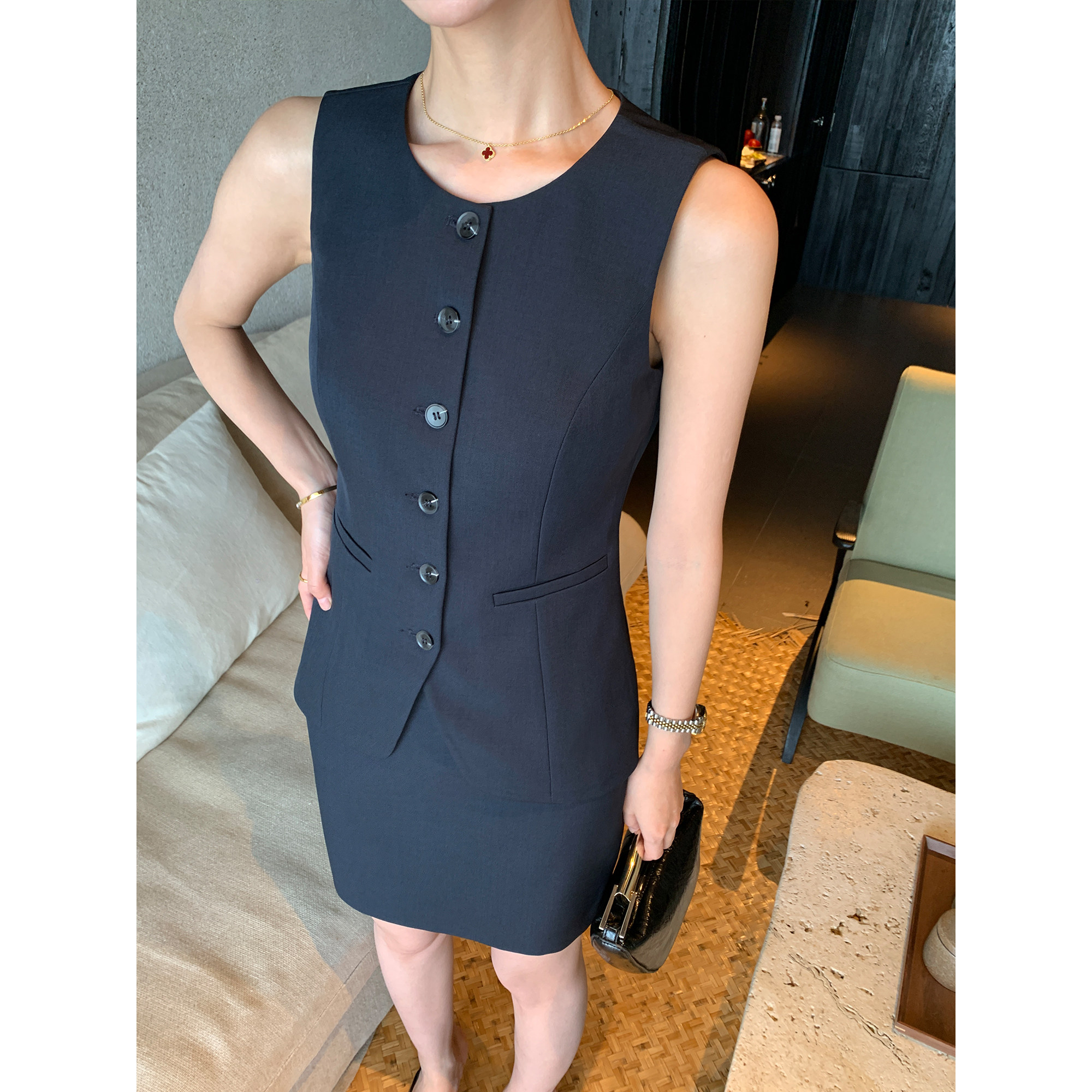 淘宝Maven Lin 高智办公室掐腰气质马甲女套装无袖马夹西装包臀半身裙