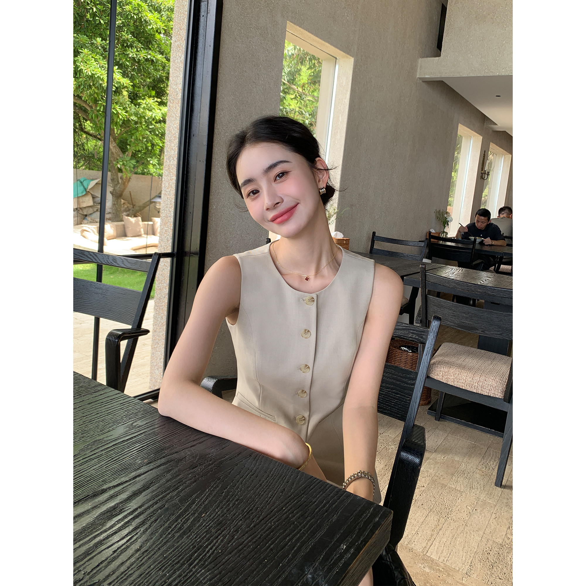 天LYNEE 简约百搭V领修身醋酸马甲女春夏新款时尚气质西装内搭马夹