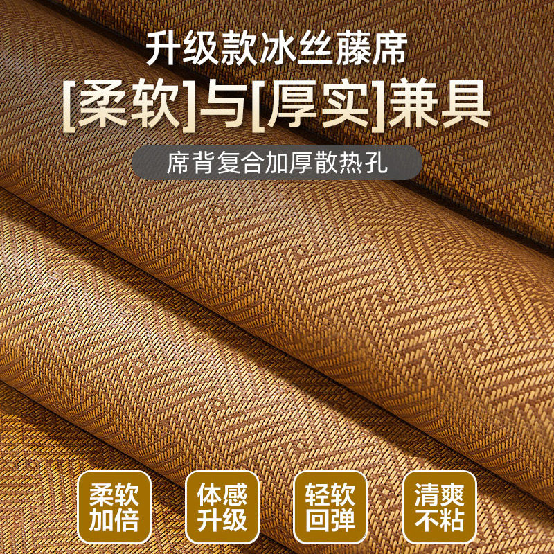 2026年新款双面藤席凉席,专为夏季清凉设计,融合传统藤编工艺与现代冰丝材质,实现双面可用:一面天然藤面透气吸汗,适合易出汗人群;另一面柔滑冰丝面触感清凉,适合直接接触肌肤。采用环保材质,安全无异味,折叠设计便于收纳,轻松放入衣柜或行李箱,学生宿舍、家用卧室皆宜。单人尺寸适配标准床铺,边缘加固包边工艺耐用不易脱线。兼具竹席的清凉与冰丝的顺滑,告别闷热黏腻,带来整夜舒爽睡眠体验。无论是居家使用还是宿舍生活,这款凉席都是夏日纳凉的优选佳品。