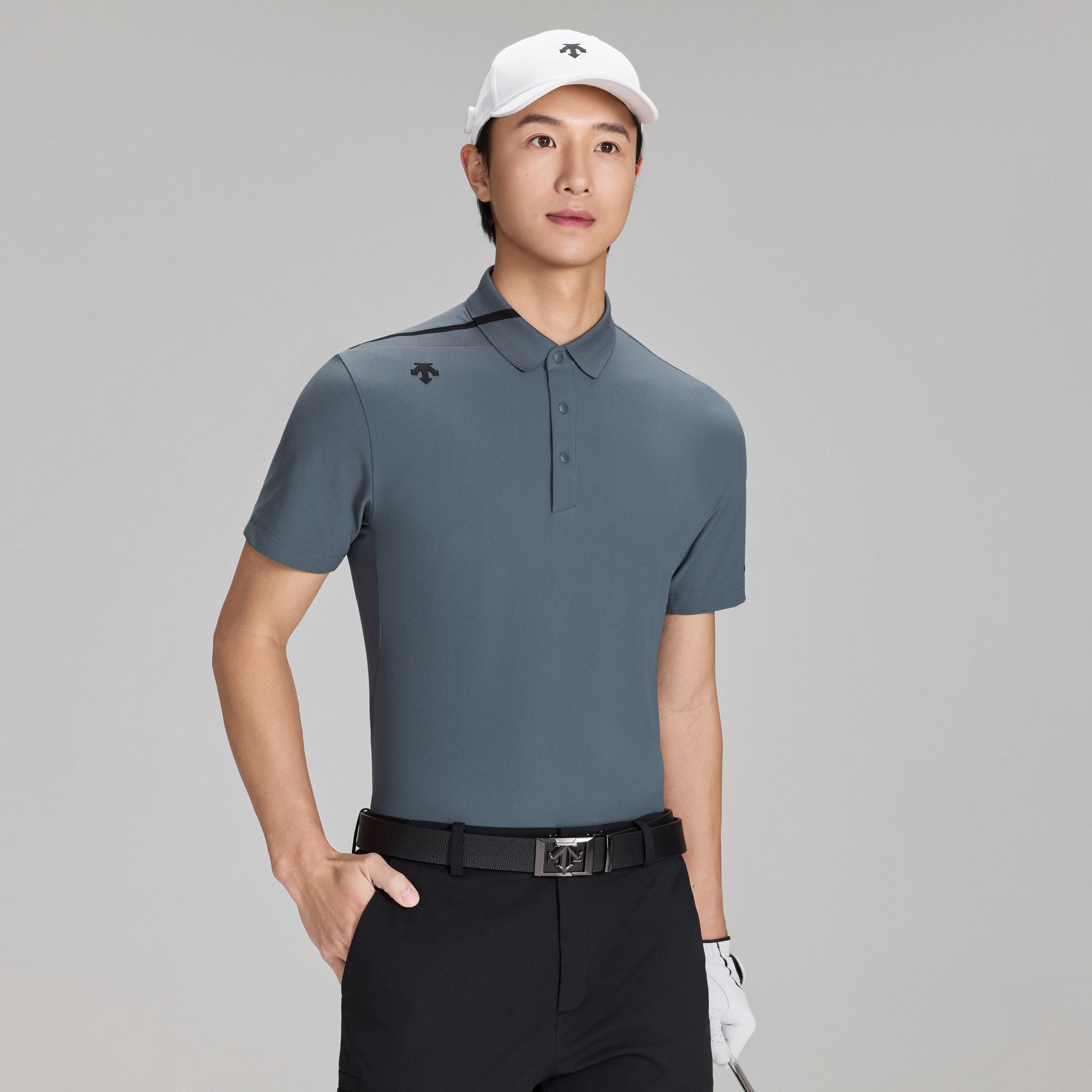 迪桑特高尔夫男士PRO防晒短袖POLO衫,精选进口肌理面料,融合科技功能与时尚设计。面料具备优异的抗紫外线性能(UPF50+),有效阻隔阳光伤害,同时具备速干、透气与四向弹力特性,确保运动时的舒适与灵活。立体剪裁贴合身形,彰显专业 golfer 的优雅气质。经典POLO领型搭配精致品牌标识,细节考究,尽显品质。无论是球场挥杆还是日常出行,皆能轻松驾驭。春夏新品,以轻盈质感与卓越防护,助力每一次自信出击,是追求功能与风格并重的高尔夫爱好者的理想之选。