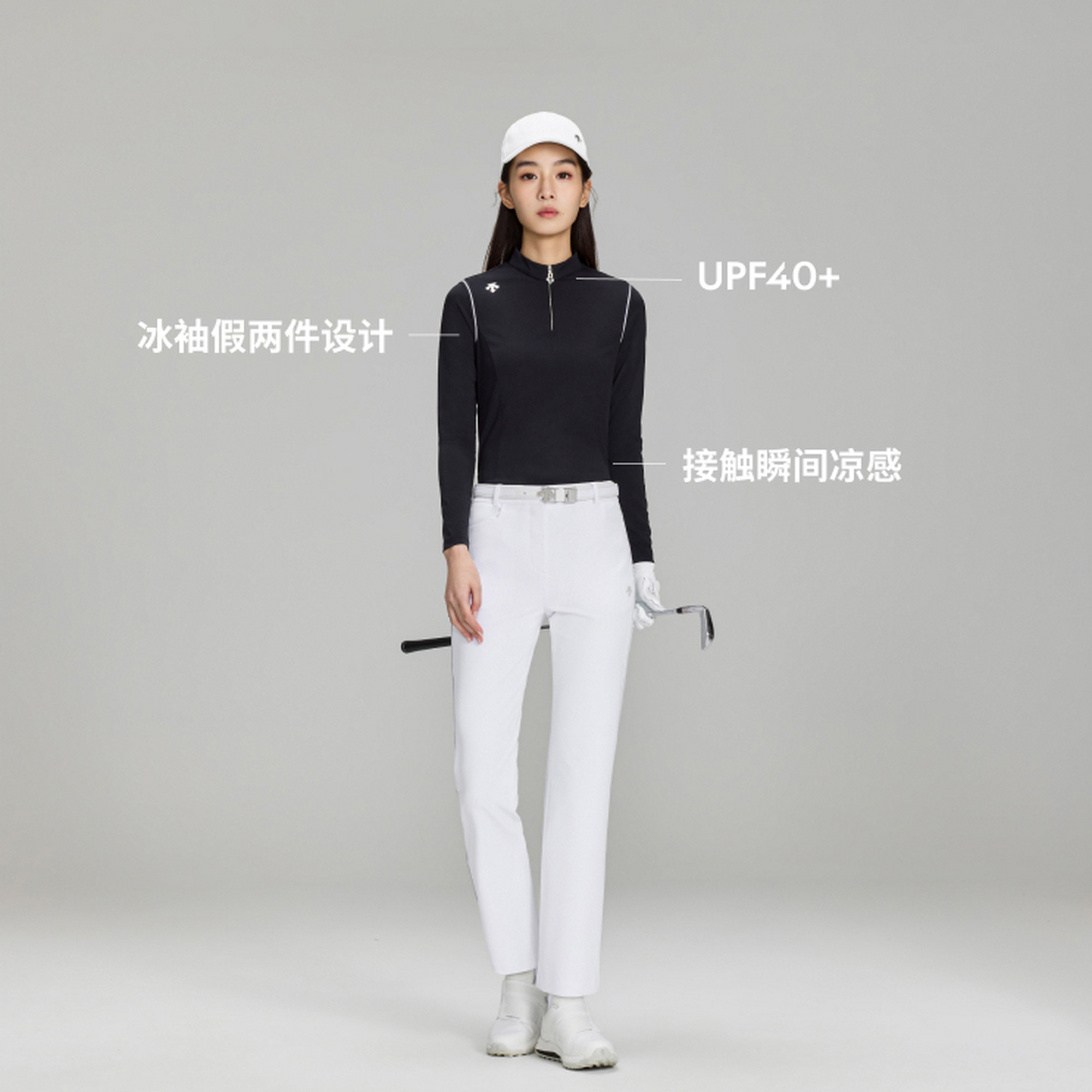 天猫【进口高弹面料】迪桑特高尔夫女PRO假两件防晒长袖POLO春夏新品
