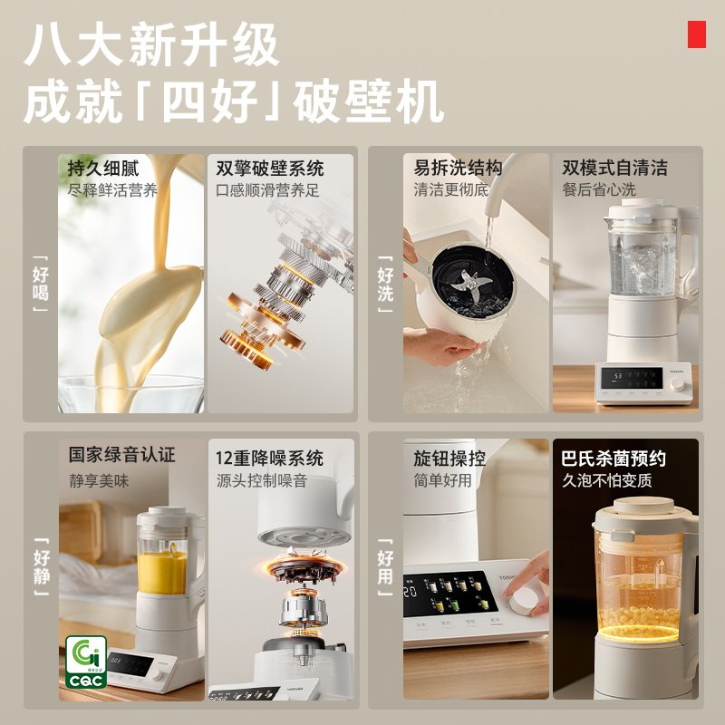 天猫东芝小白露破壁机家用全自动多功能轻音无渣免滤豆浆机料理榨汁机