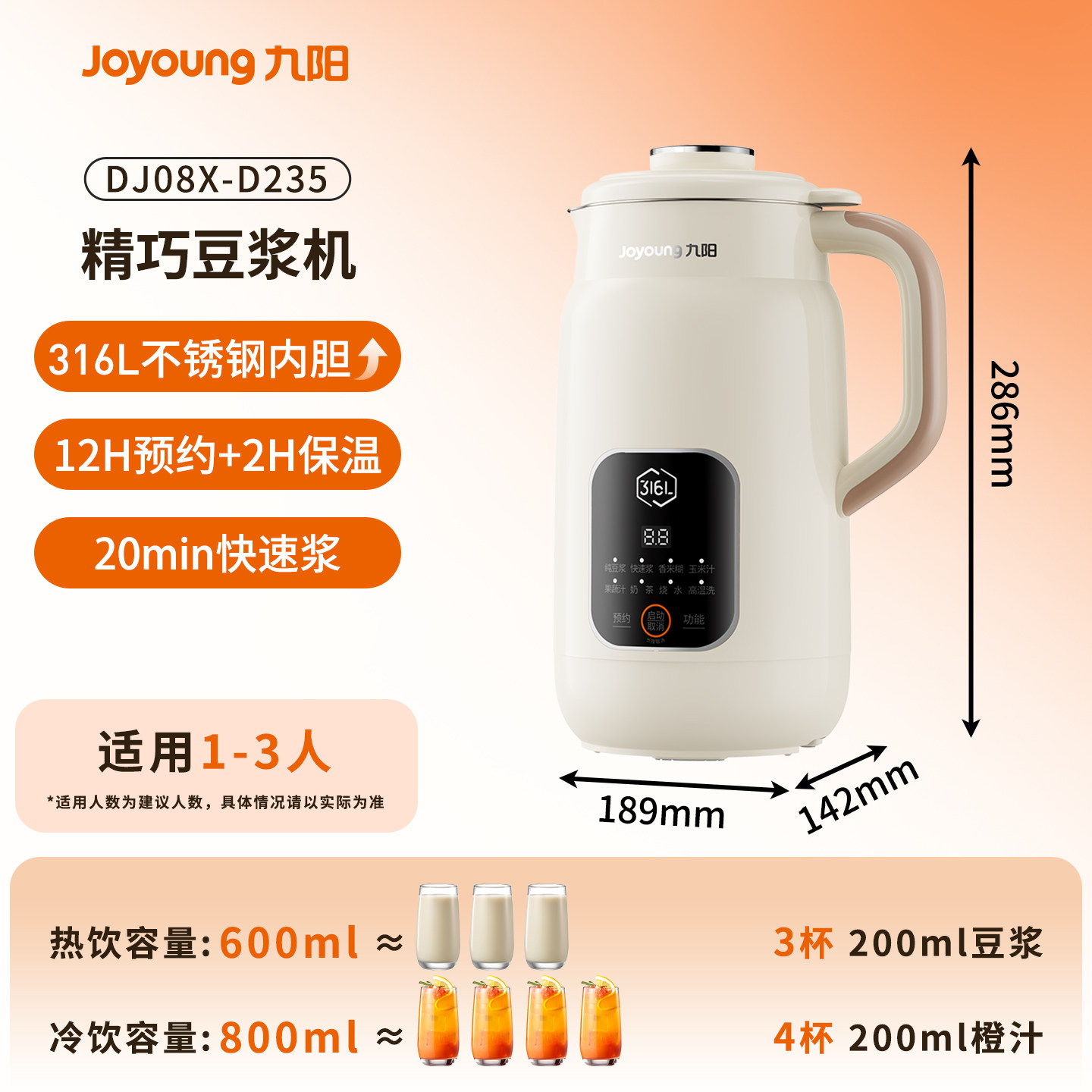 九阳豆浆机小型家用全自动破壁迷你款,专为1-3人家庭设计,集豆浆、米糊、果汁、浓汤等多种功能于一体。采用高速破壁技术,无需过滤即可享受细腻顺滑的口感,免煮设计一键完成,省时省力。迷你机身节省厨房空间,操作简便,清洗轻松。配备智能温控系统,防溢防干烧,使用更安全。无论是清晨营养豆浆,还是宝宝辅食、老人养生糊,都能轻松应对。九阳品质保障,静音运行,是现代家庭健康饮食的理想选择,让美味与健康触手可及。