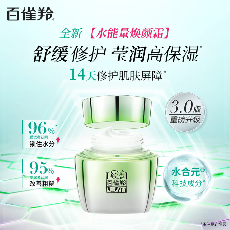 淘宝百雀羚面霜水能量焕颜霜 滋润肌肤补水保湿修护舒缓秋冬 正品官网