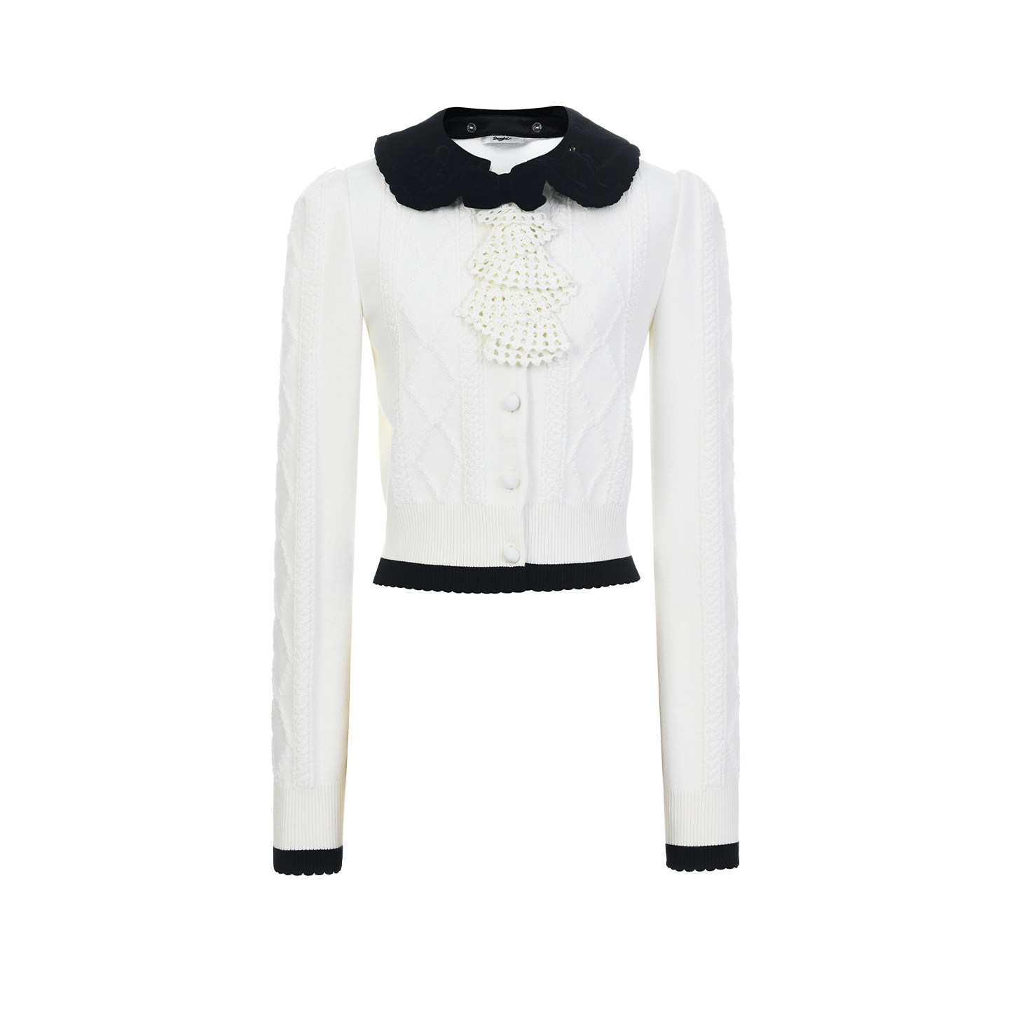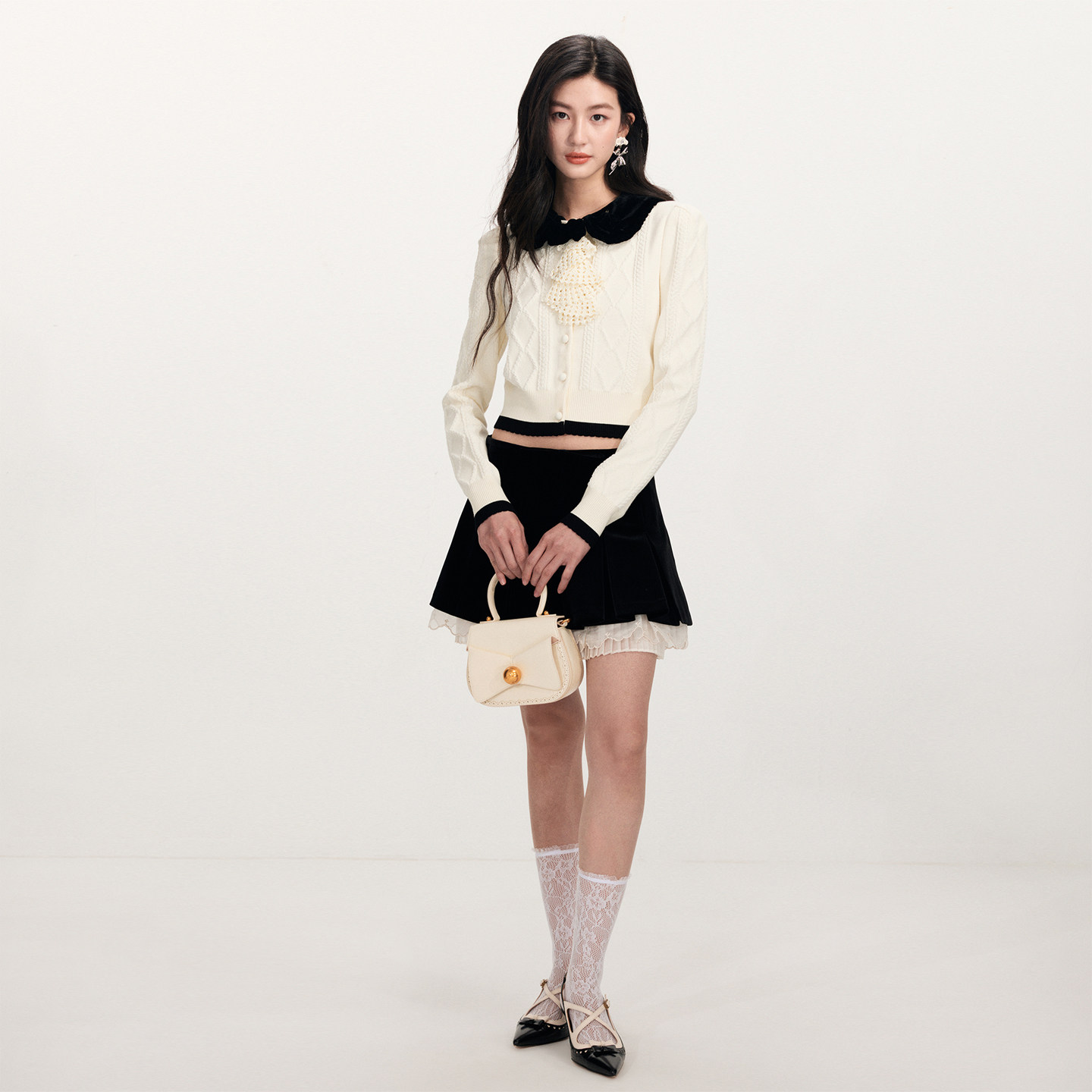 天猫【Angelababy同款】lefame拉飞姆2026新款撞色针织开衫毛衣上衣女