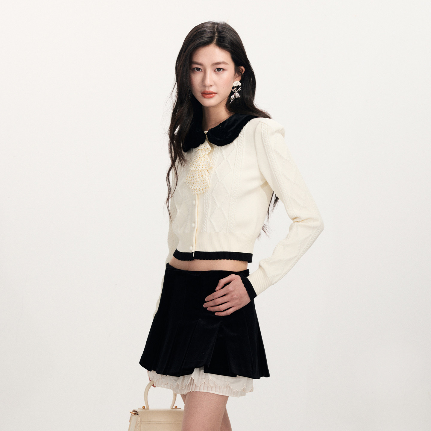TeenieWeenie小熊女装简约休闲撞色圆领贴布绣毛衣针织衫开衫外套