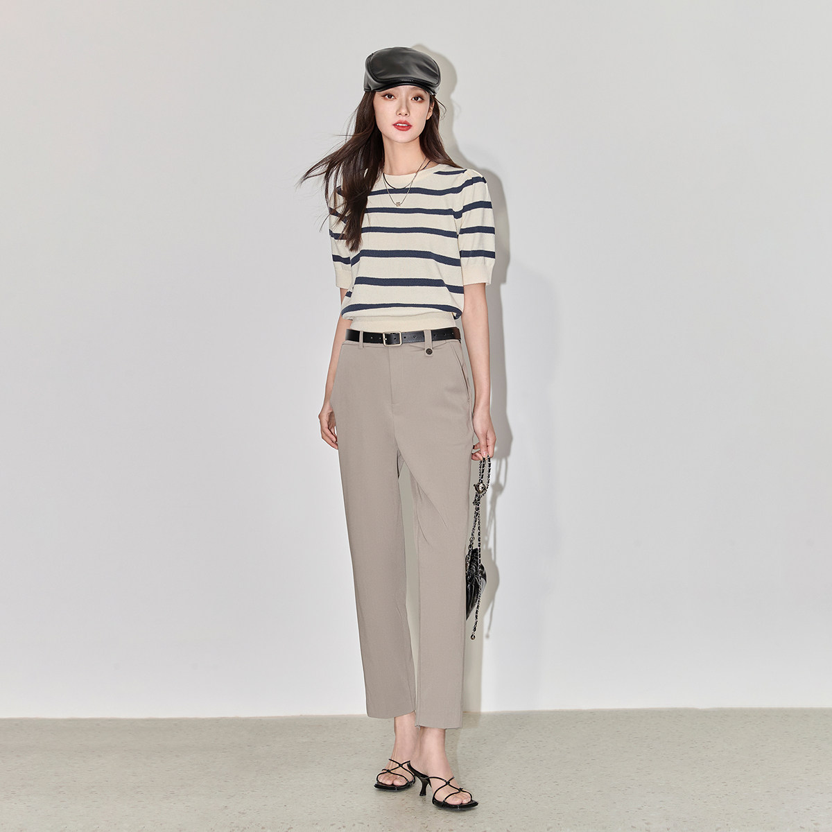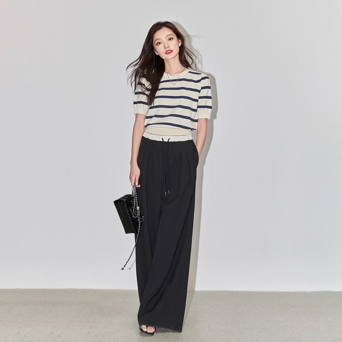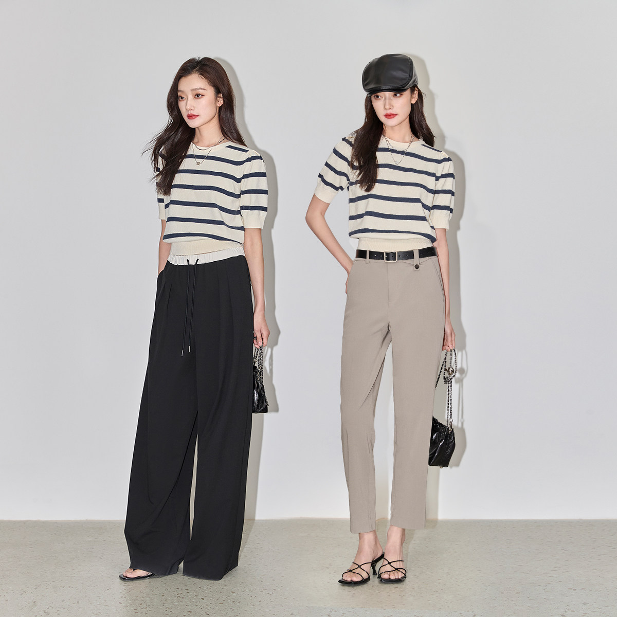 LILY2026夏新款复古条纹休闲通勤气质泡泡袖修身短款针织衫,融合经典复古条纹与现代简约设计,展现优雅知性魅力。采用柔软亲肤的针织面料,轻盈透气,适合夏日穿着。修身短款剪裁凸显腰线,拉长身形比例,轻松打造高挑视觉效果。复古泡泡袖设计增添浪漫气息,兼顾时尚与舒适,适合通勤、约会或日常休闲多种场合。细腻条纹配色雅致百搭,可轻松搭配高腰裤或半身裙,轻松穿出法式慵懒风情。无论是职场还是出街,这款针织衫都能为你增添一抹清新气质,是夏日衣橱不可或缺的时尚单品。