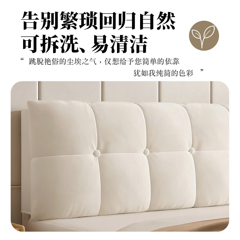 鸿蒙奶油风床头靠垫榻榻米软包大靠背简约现代实木床大靠背加厚款