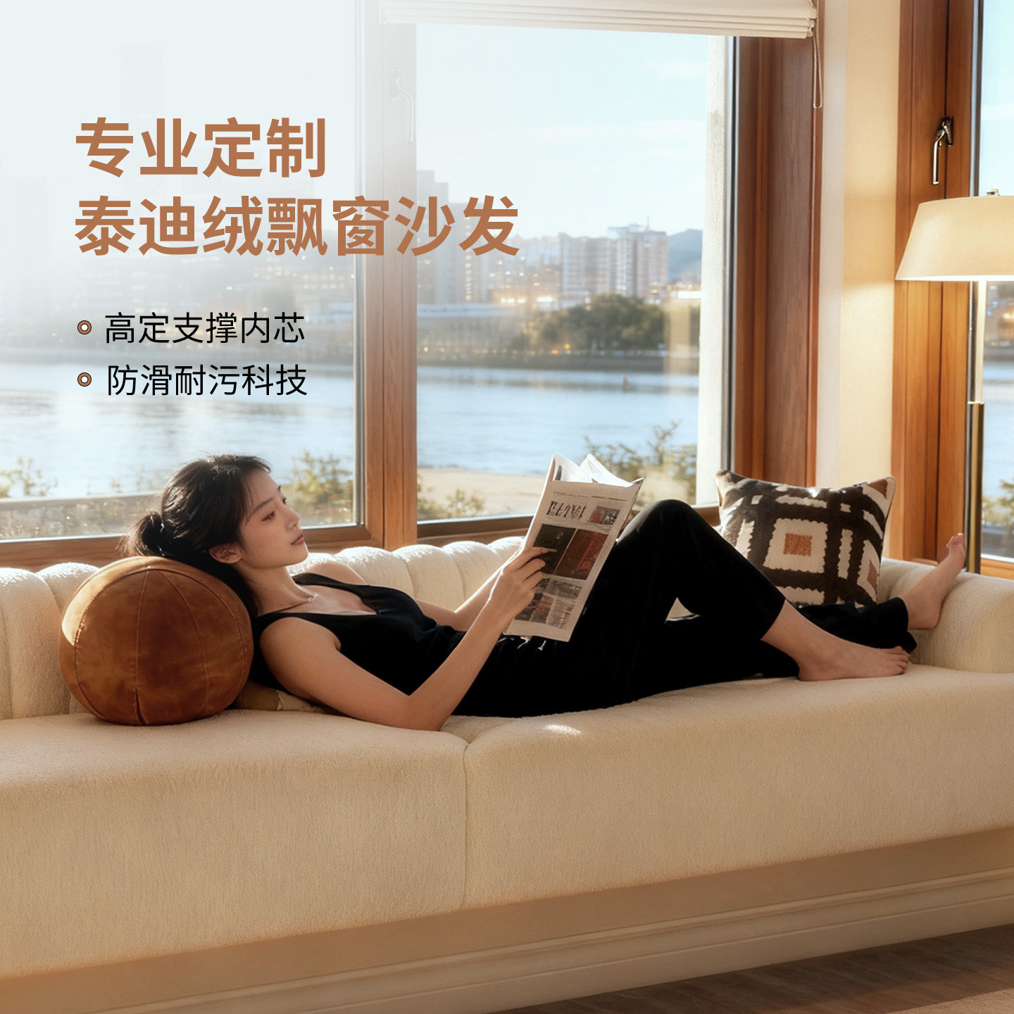 2026新款飘窗沙发坐靠一体飘窗垫,专为现代家居设计,集舒适与美观于一体。采用高密度回弹海绵填充,外层搭配亲肤透气面料,久坐不塌,承托力强。坐垫与靠背一体化设计,完美贴合人体曲线,轻松变身休闲沙发或阅读卡座。底部防滑处理,稳固安全;可拆洗外套,清洁便捷。适用于飘窗、阳台、窗台等多种场景,瞬间提升空间利用率与格调。无论是午后阅读、品茶小憩,还是亲子互动,都是理想之选。让每一寸窗边空间,都成为温馨舒适的专属角落。
