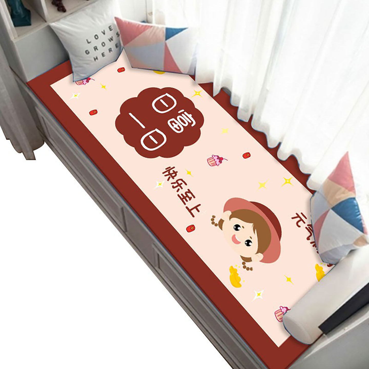天猫萌系卡通飘窗毯四季通用卧室儿童房床边毯加厚防滑家用简约风地垫