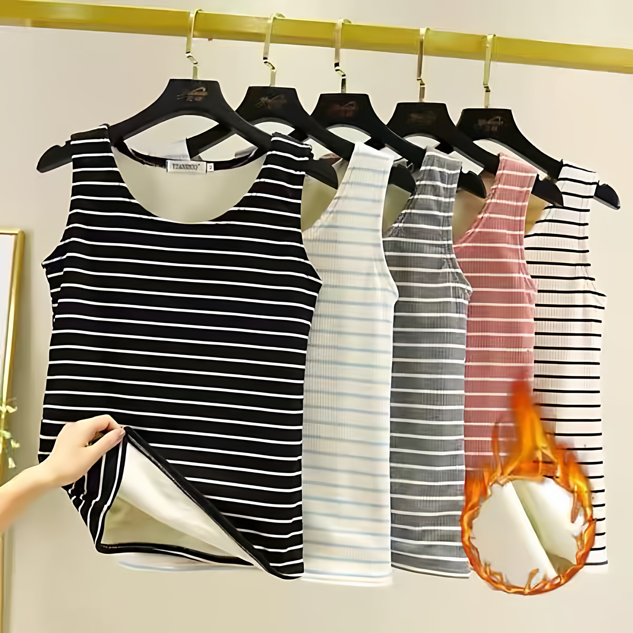 淘宝彩色条纹加绒加厚保暖背心秋冬女防寒内穿秋衣无袖T恤棉质打底衫
