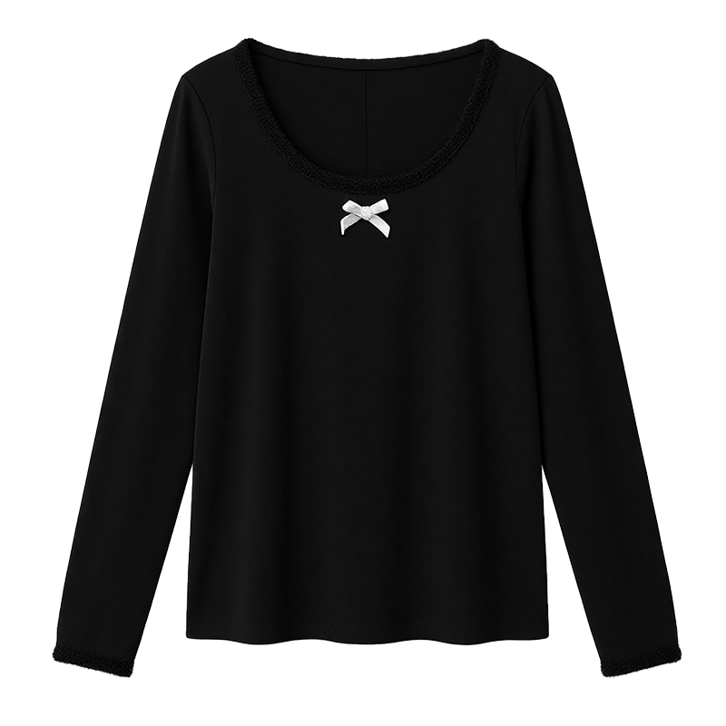 方领长袖T恤女士春秋新款洋气韩版休闲百搭小个子内搭短款打底衫