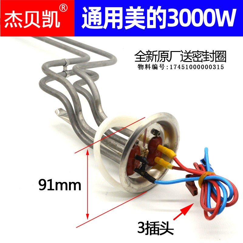 淘宝通用美的电热水器发热管3000W双组带线F50-30BM 60升80L40配件