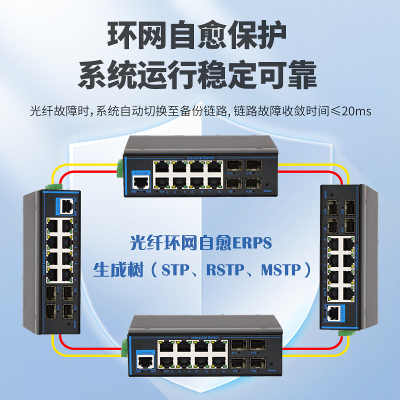 巢客工业级万兆交换机专为严苛工业环境设计,支持环网冗余与三层网管功能,具备高可靠性与强抗干扰能力。提供多种端口配置(如4光4电、4光24电、48电口等),灵活适配不同场景需求。配备2.5G/万兆光口,实现高速数据传输,支持POE供电,可为摄像头、AP等设备远程供电。支持STP/RSTP/MSTP环网协议,毫秒级故障恢复,保障网络稳定运行。具备VLAN、QoS、ACL等三层管理功能,便于运维管理。广泛应用于智能交通、电力、安防监控等工业领域,是构建高效、稳定工业网络的核心设备。