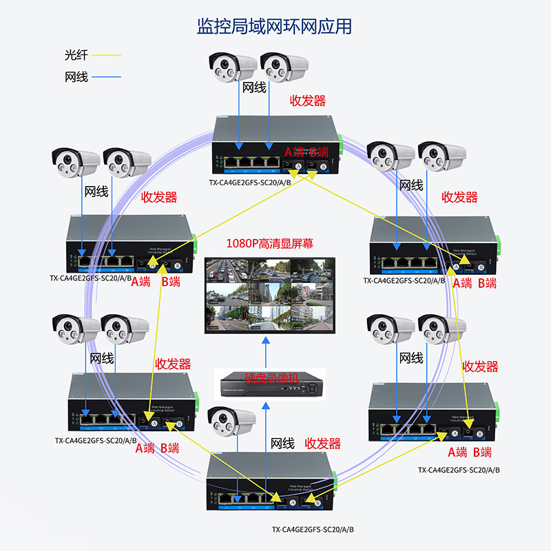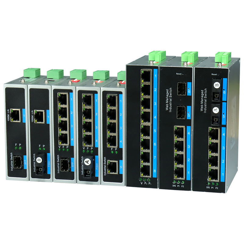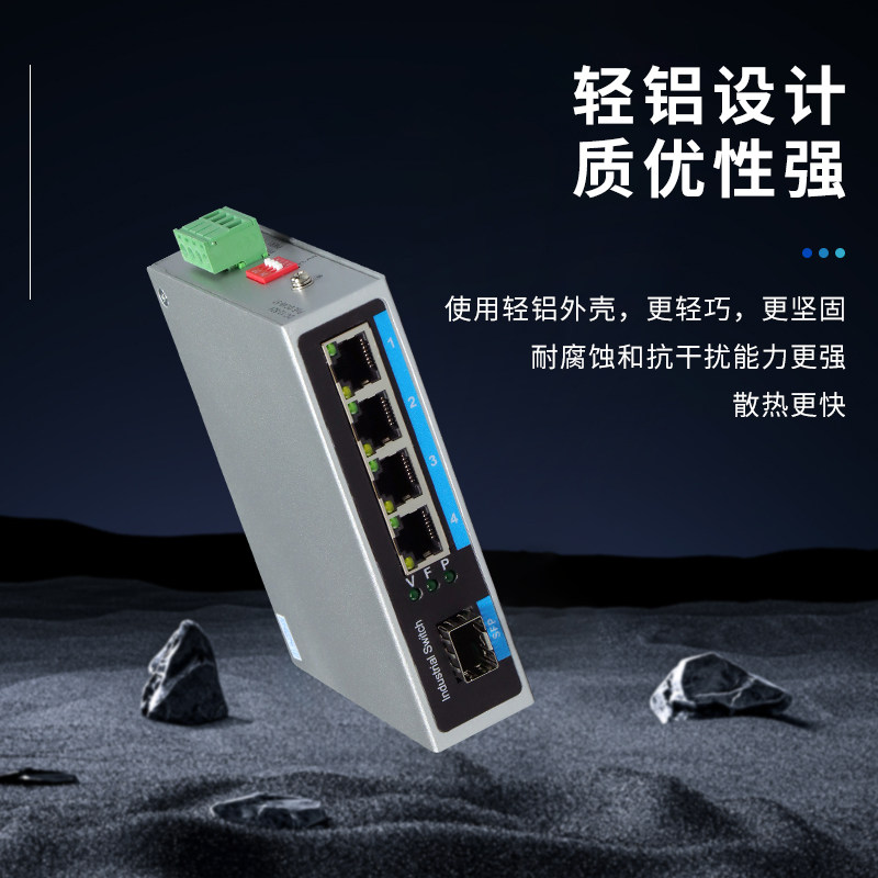 拓轩工业交换机系列专为严苛工业环境设计,具备高可靠性与稳定性能。产品涵盖百兆/千兆5口、8口POE供电交换机,支持IEEE 802.3af/at标准,可为摄像头、AP等设备远程供电,简化布线。采用轻量化铝合金外壳,散热优异,抗干扰强,适应-40℃~75℃宽温工作。其中1光4电、2光4电型号支持光纤接入,实现远距离传输;WEB环网交换机具备环网冗余功能,自愈时间<20ms,保障网络高可用。支持WEB管理,配置便捷,广泛应用于智能交通、电力、安防等领域,是工业联网的理想选择。