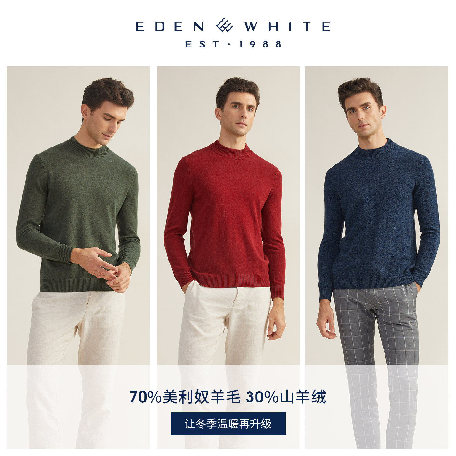 天猫圣雪绒2021秋冬新款男半高领纯色羊绒衫简约基础款长袖针织衫