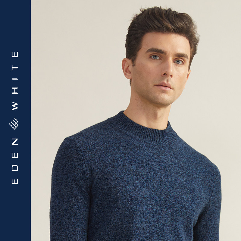 金菊绵羊毛+山羊绒冬新款男式羊绒衫高翻领简约大气保暖亲肤厚款