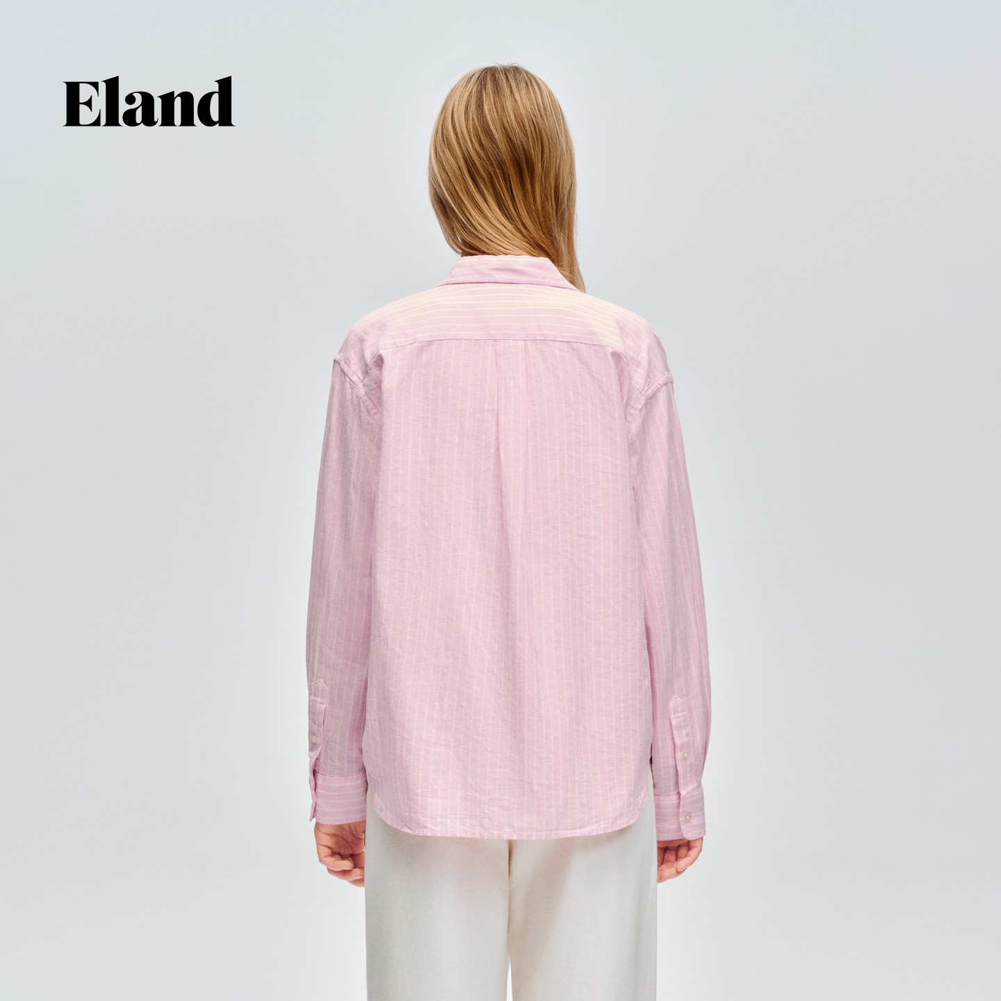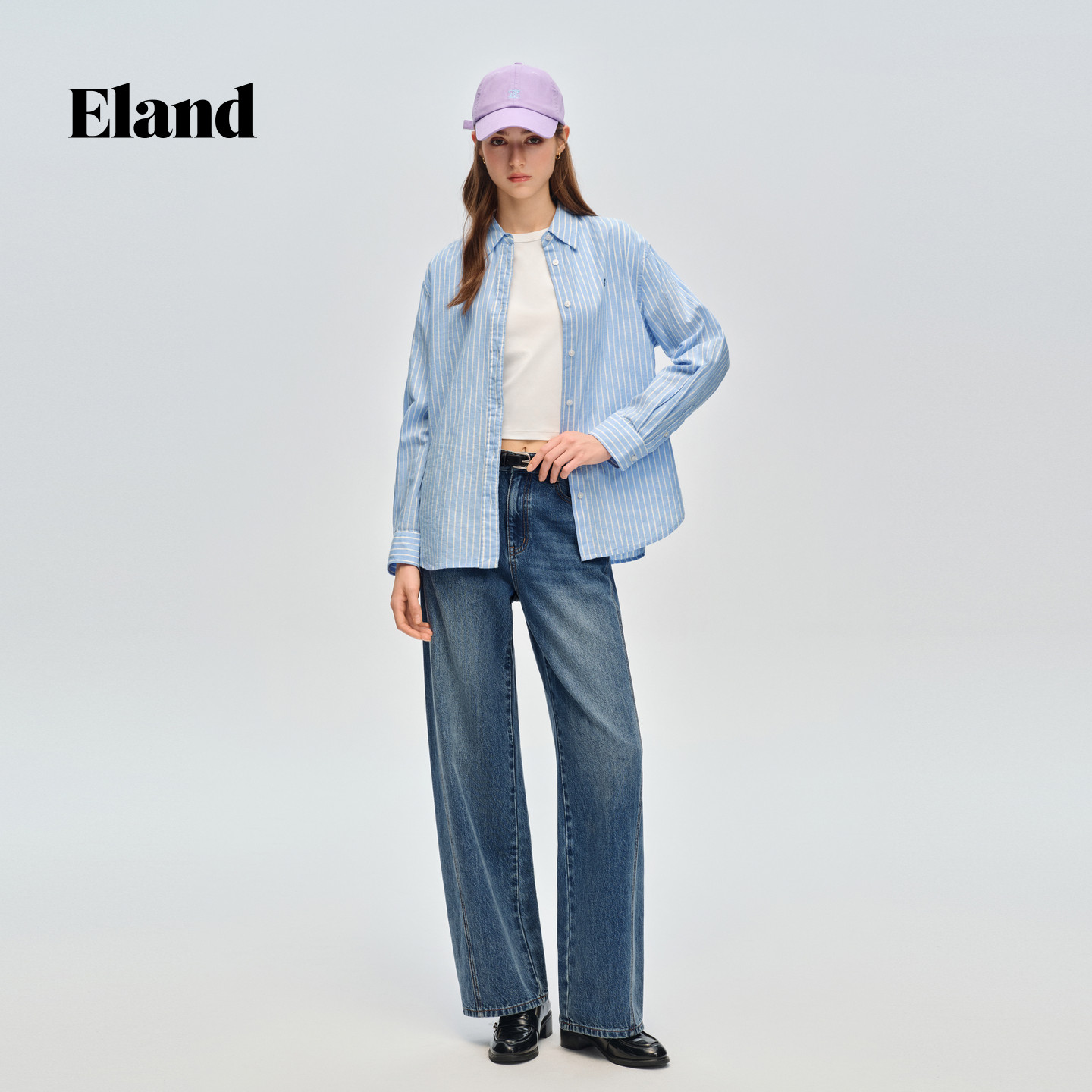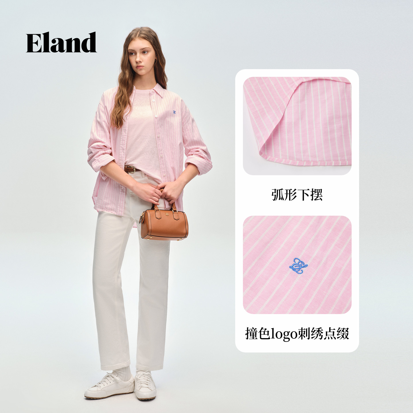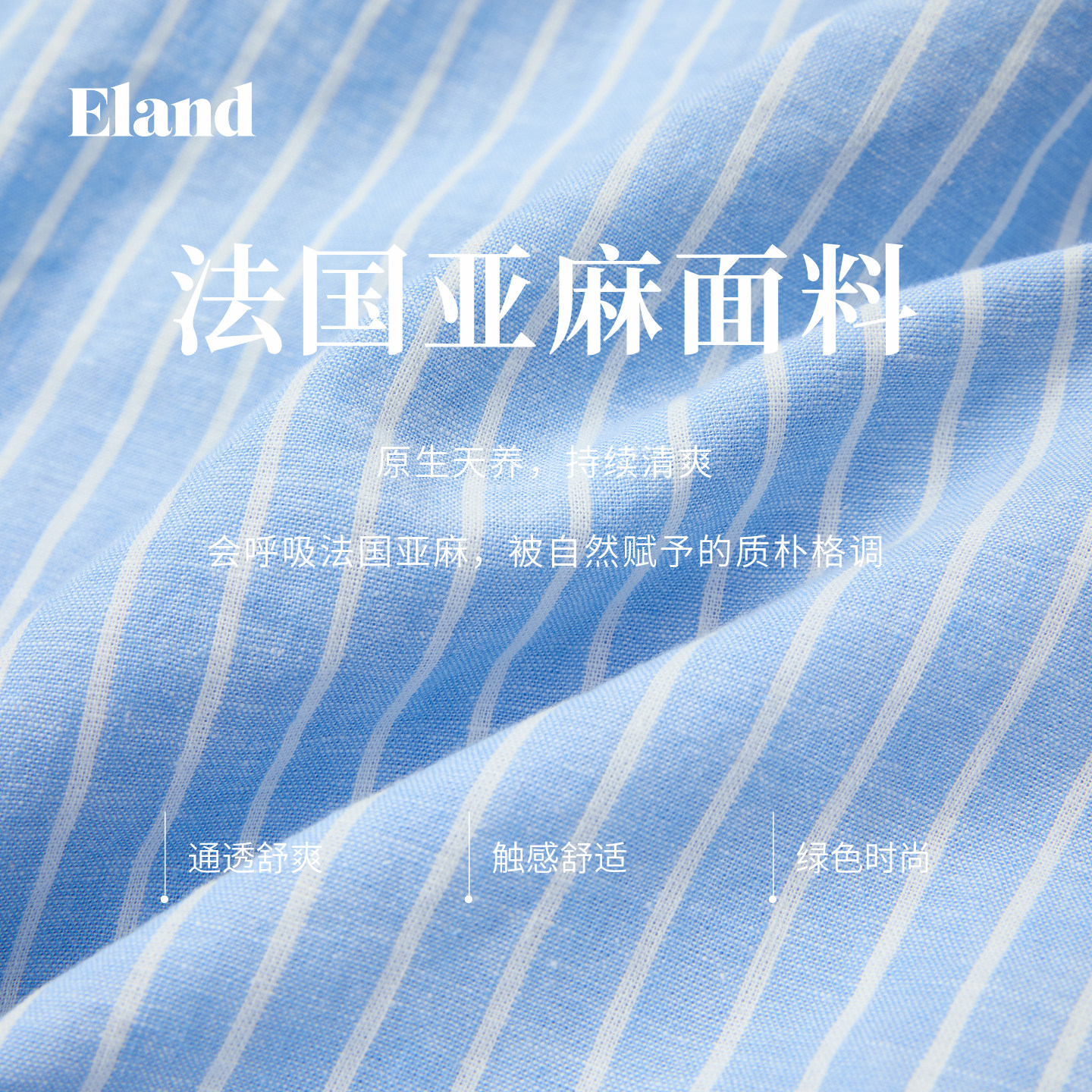 天猫【亚麻】Eland衣恋衬衫男女翻领通勤棉质条纹上衣2026春季新款