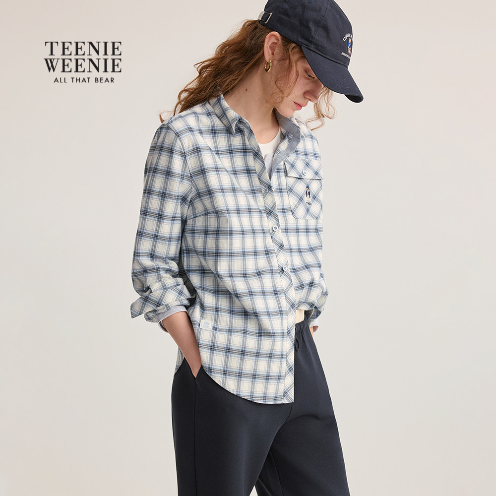 天UNIFREEPLUS【美高布朗尼·漂亮转校生】大码格纹女衬衫修身衬衣