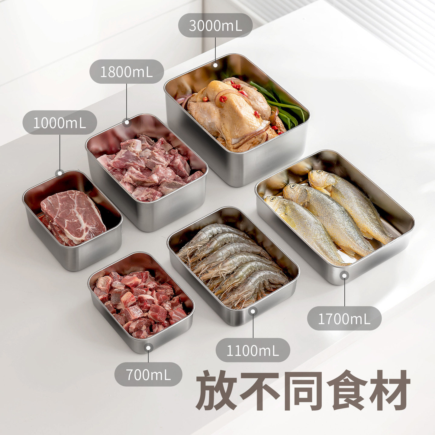 天猫懒角落304不锈钢保鲜盒冰箱收纳冷冻室分装食品级专用厨房备菜盒