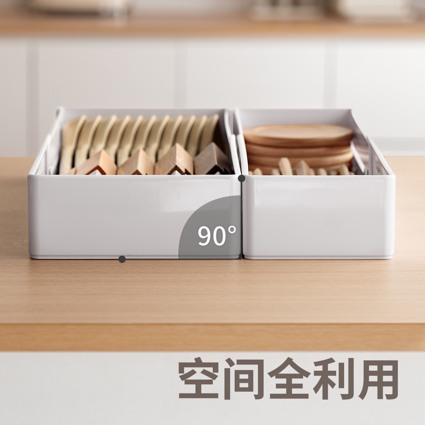 霜山直角收纳盒可叠加厨房橱柜调料整理盒家用零食杂物塑料收纳筐