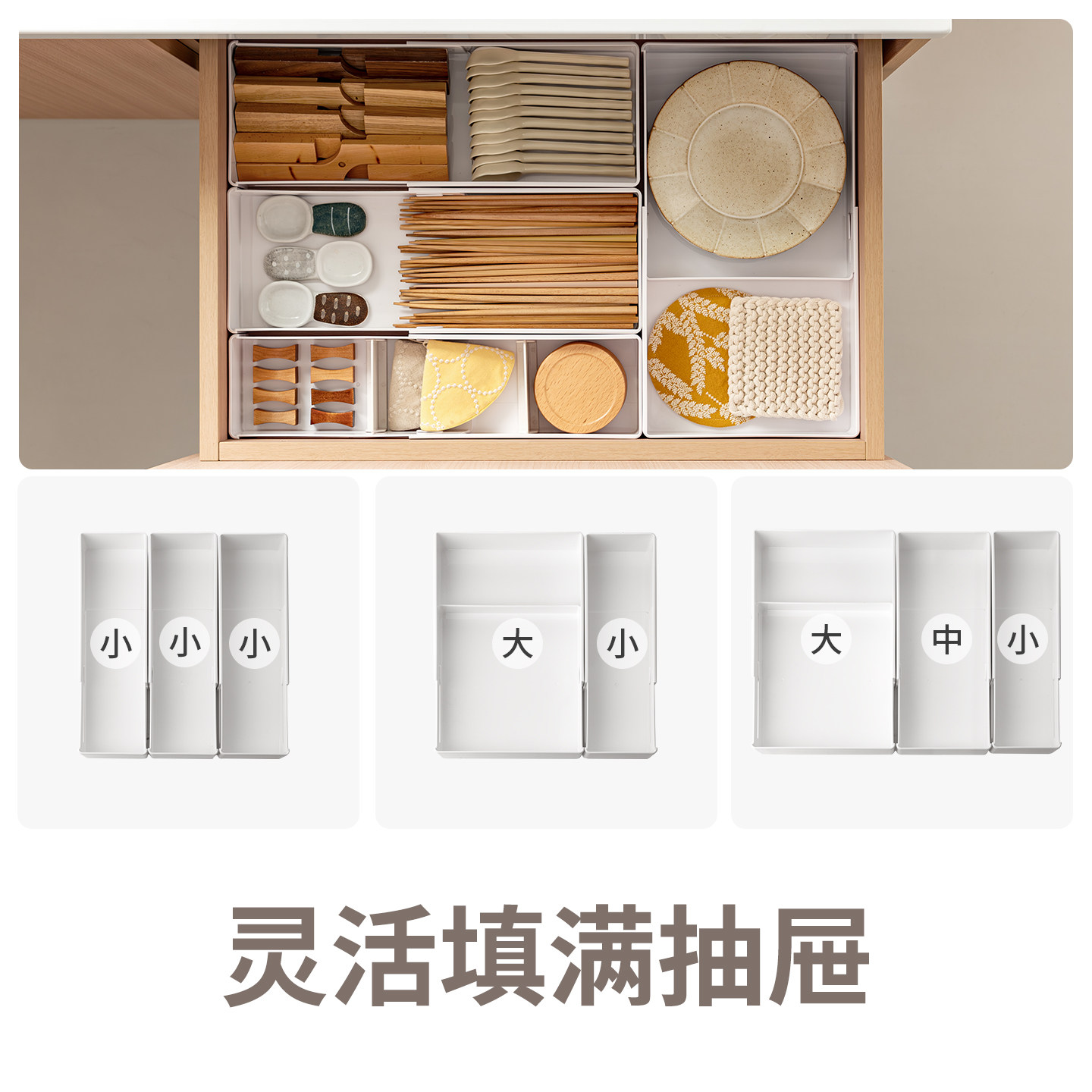 淘可伸缩收纳盒分隔抽屉式内置整理盒厨房餐具桌面化妆品杂物分格盒