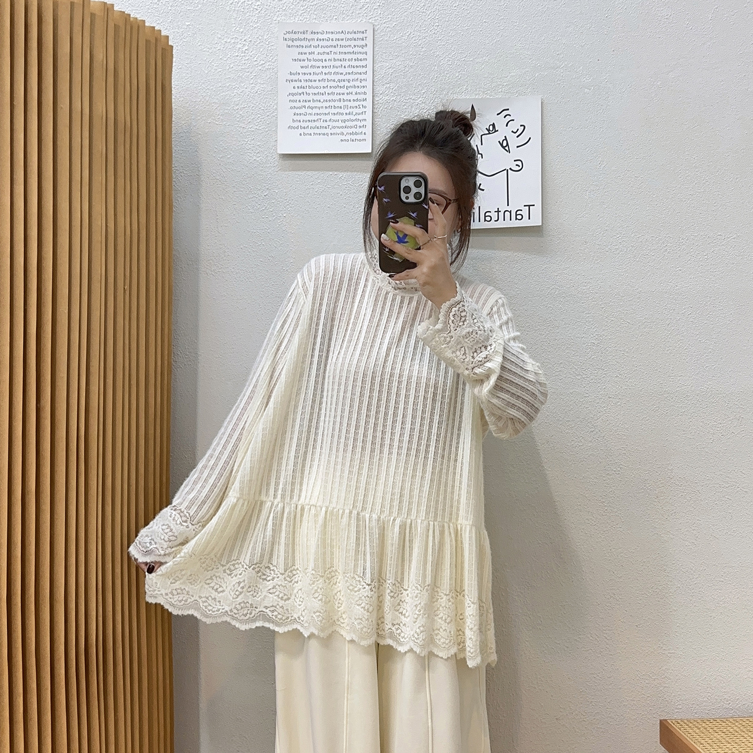 淘宝宛宛大码女装秋装蕾丝衫女胖妹妹网纱内搭上衣200斤洋气T恤打底衫