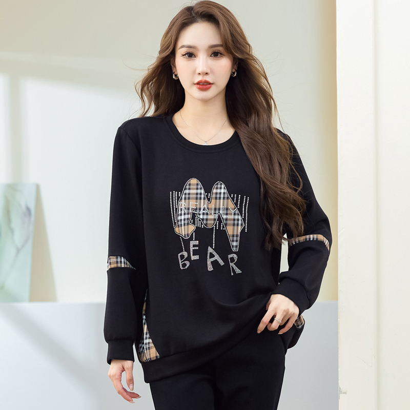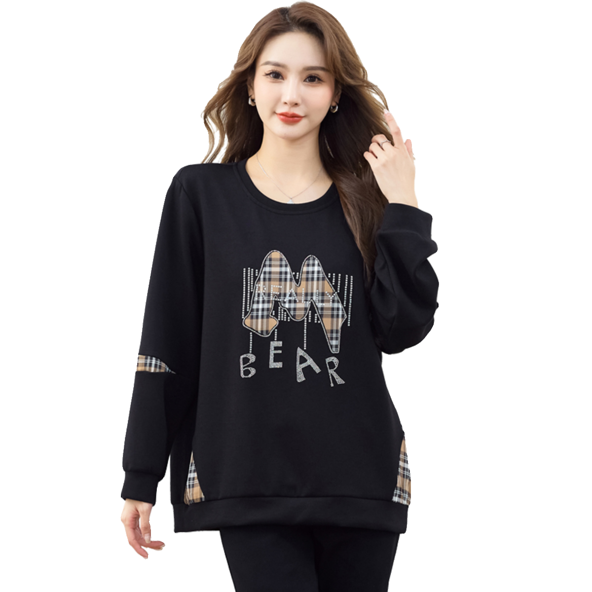 淘宛宛大码休闲字母印花正肩长袖卫衣女胖MM宽松长袖T恤打底衫上衣