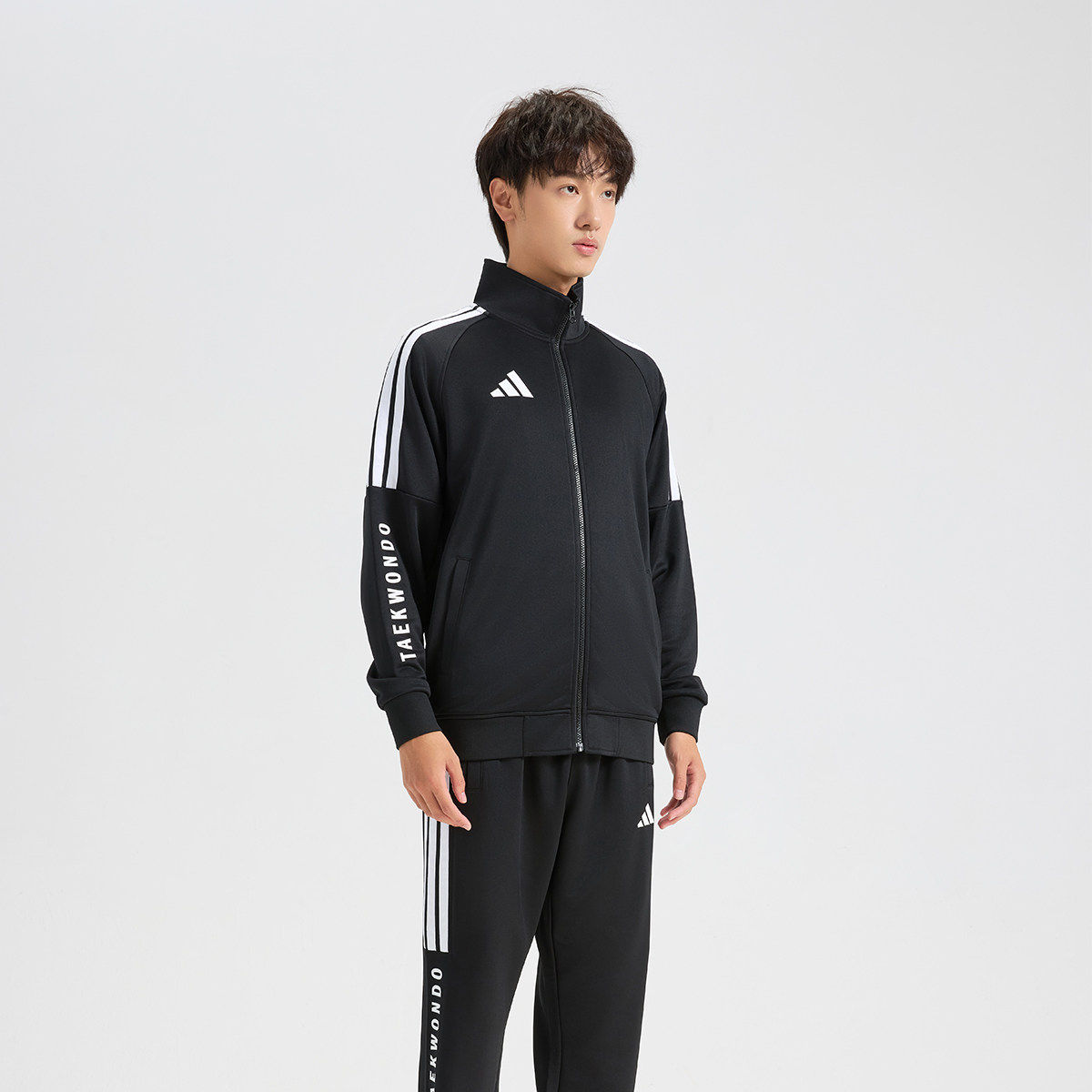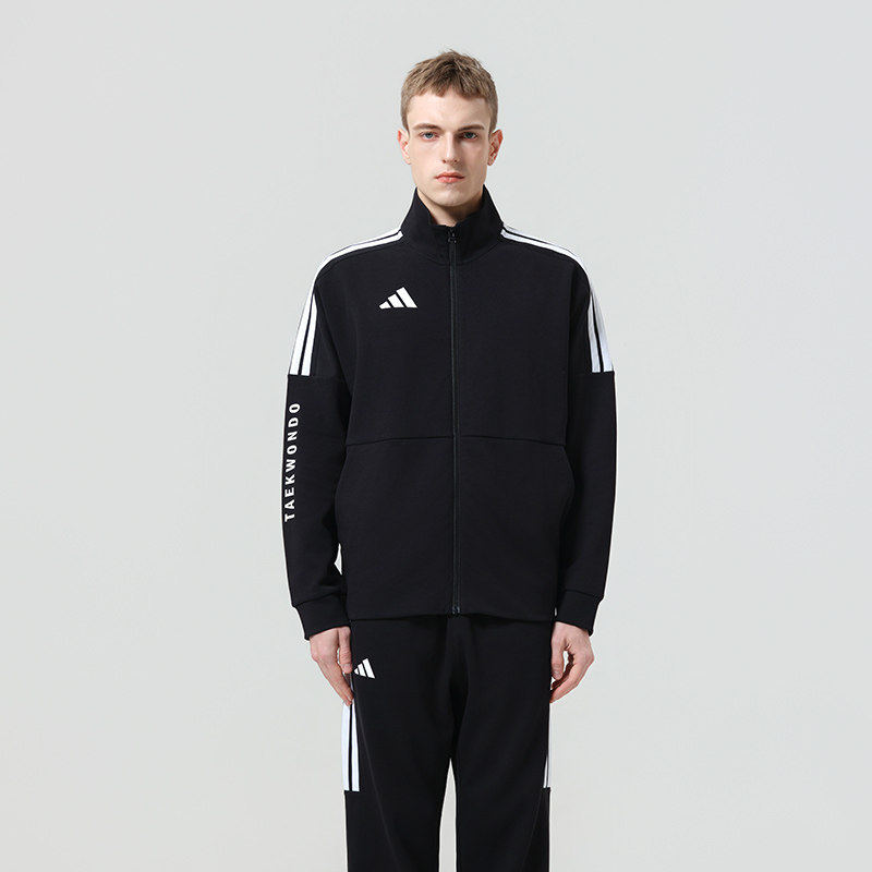 天猫Adidas/阿迪达斯男子夹克休闲穿搭经典三条纹针织立领外套