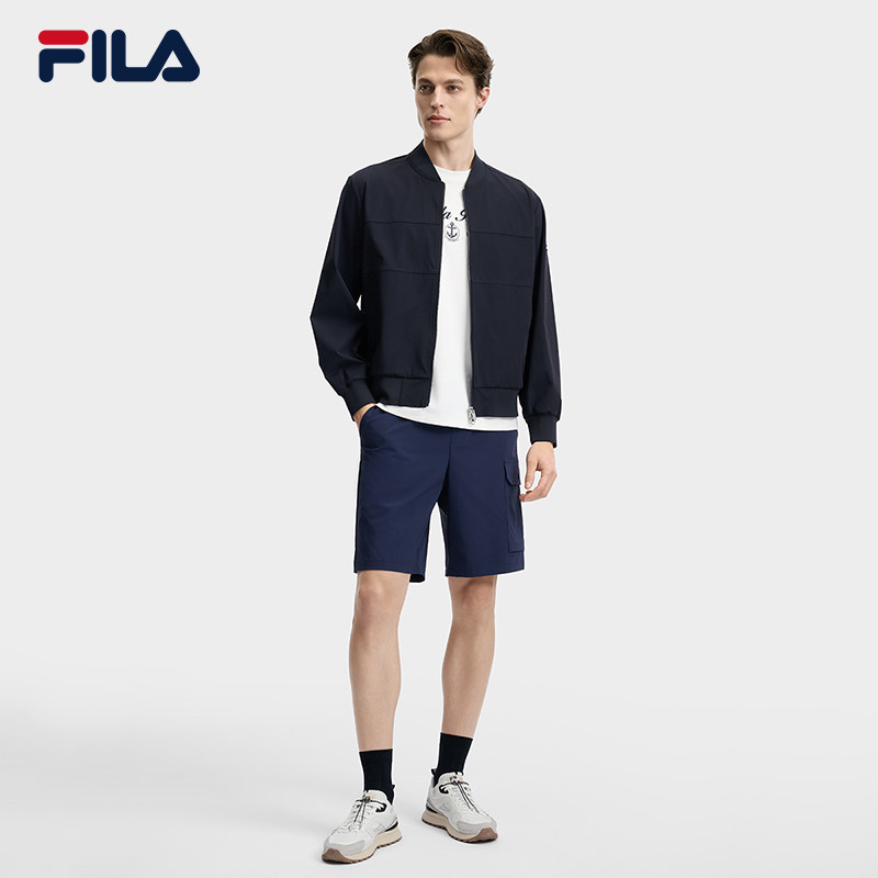 FILA 斐乐官方男士梭织外套2025春新款时尚简约休闲基础黑色上衣