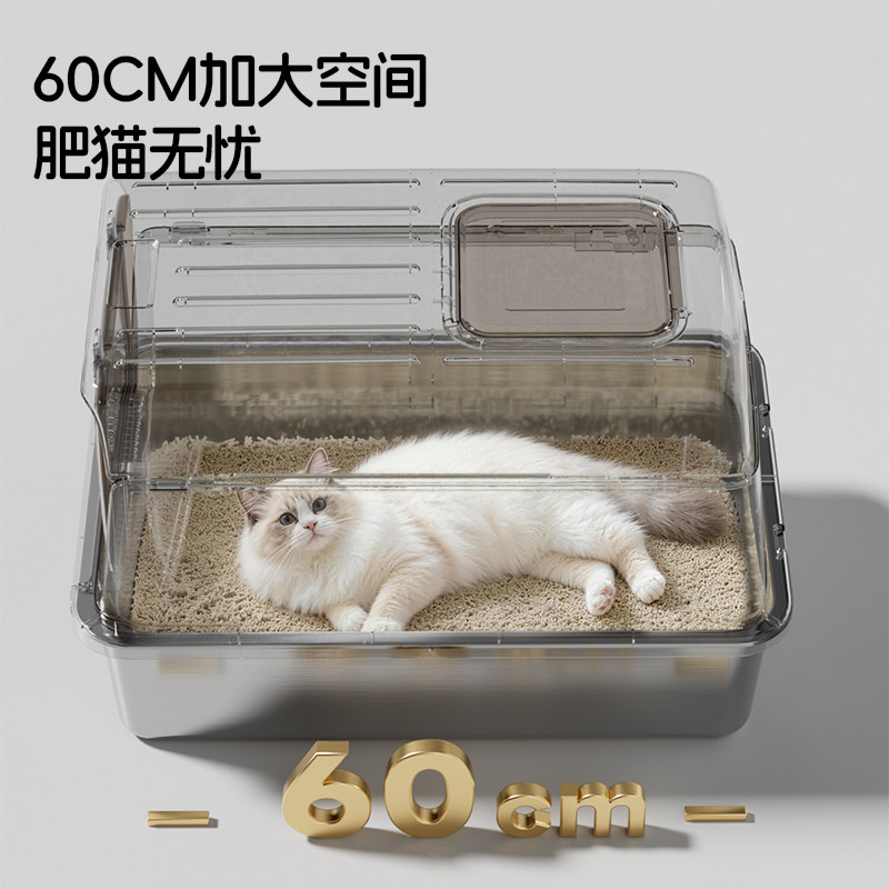天猫猫砂盆不锈钢全封闭式超大号防外溅特大号巨型缅因防臭猫厕所顶出